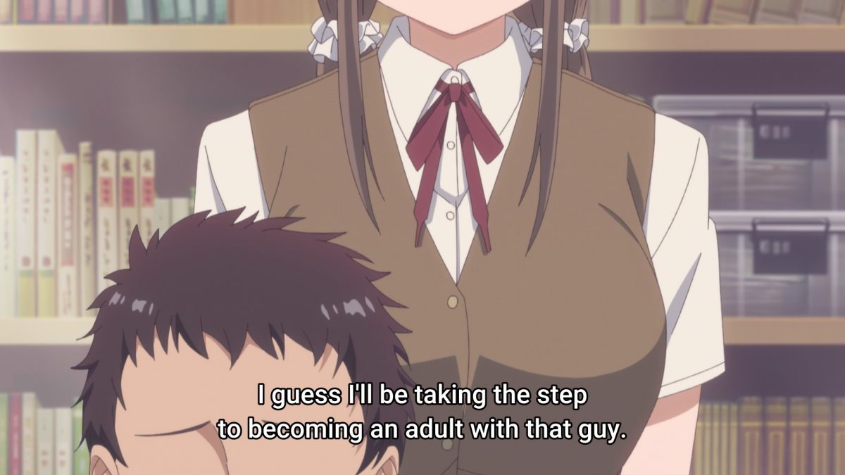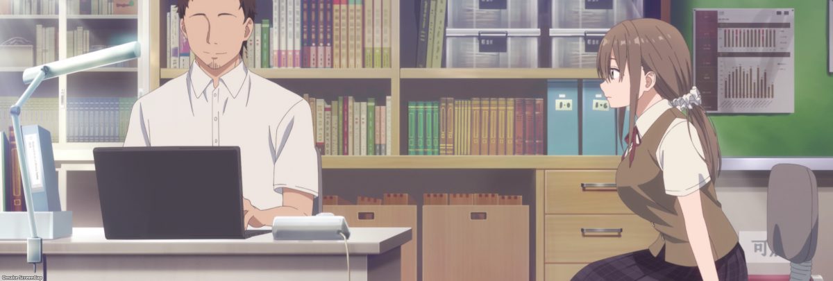 Ooh. Bangs-chan made her move. Counseling for love advice. Would Sensei be okay with Bangs-chan taking the stairs to adulthood with a boy who confessed his romantic feelings for her? He can’t say it, literally. The Tawawa on Monday voice actor for Sensei only makes reaction sounds. However, Sensei would not like someone taking Bangs-chan away from him! Haha! She caught him letting his true feelings out!
