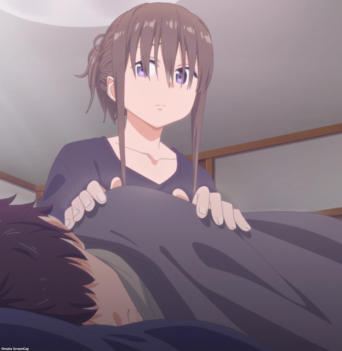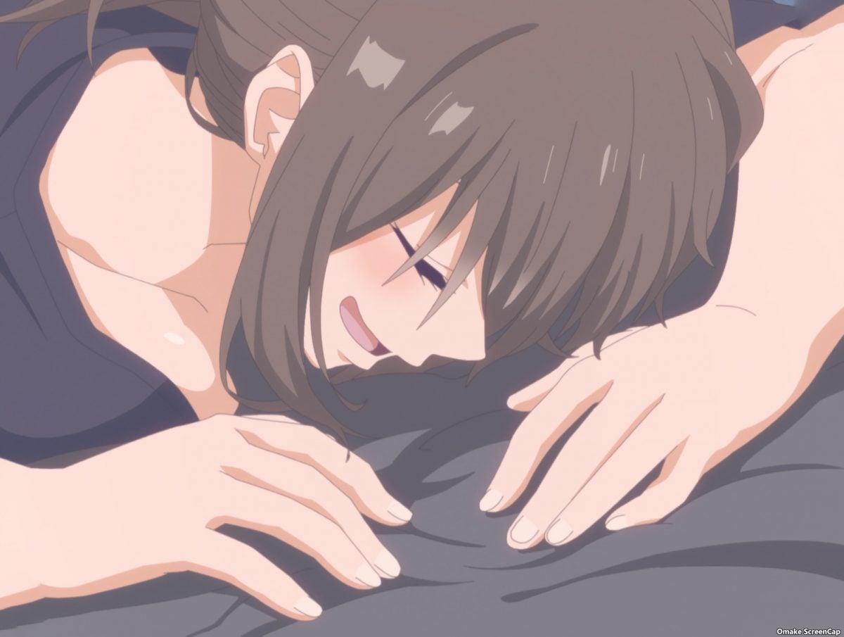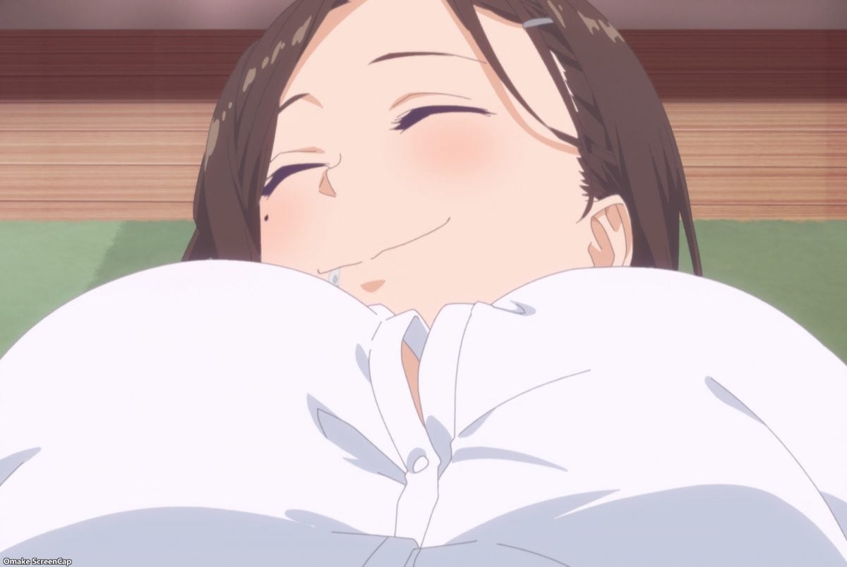 Sensei is sick. But he can’t let Bangs-chan call the school for him! Their secret relationship status annoys her. As it should. Bangs-chan wants to take care of Sensei. What’s he so reluctant for? A beautiful woman mothering a man is living the dream. Oh, he’s feeling better now. Bangs-chan dozed off at his side. That’s dedication. Why is he looking at her fingers? Aha! He’s trying to measure her ring finger! He’ll get another chance, as the Tawawa on Monday title card showed us.