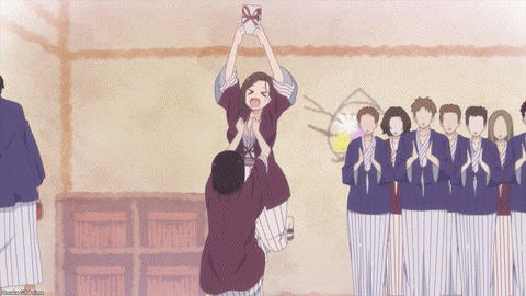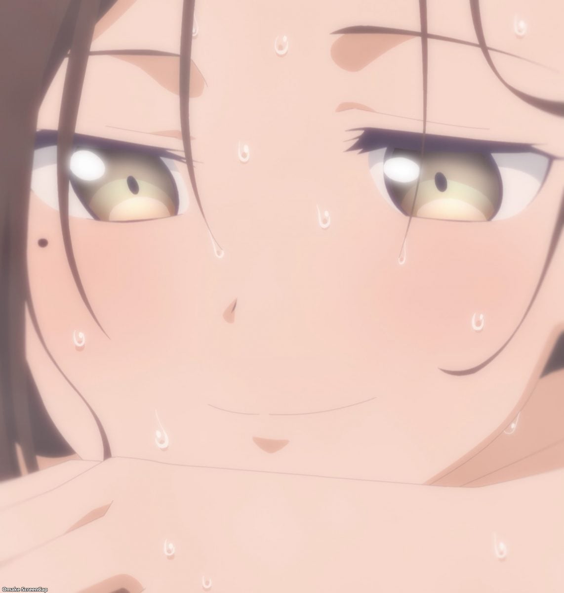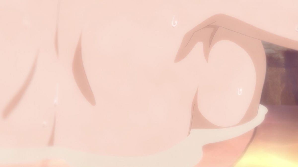 Senpai knows the best time to have a private soak in the onsen is in the middle of the night. Hey, so does Kouhai-chan! Aw. They’re just going to talk through the fence. Nice. Naked talk in the bath is still fanservice when Kouhai-chan is on the scene. She claims that she’s starting to think as Senpai does, and other managers have noticed too. They consider this a positive sign of development, but Senpai isn’t so sure.