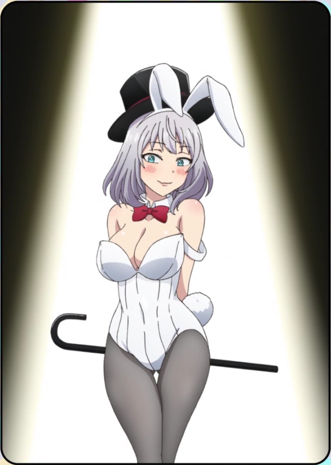 MC-kun is now dubbed “Assistant-kun” by the irrepressible Sempai, who also fails to introduce herself. His commentary is great straight-man comedy. Tejina-sempai is too precious! Of course, Assistant-kun is going to give her a little bit more attention. Maybe just not his money right away. She tries so hard to keep her trick going. The money magically flew into her wallet… Magic tricks are expensive.