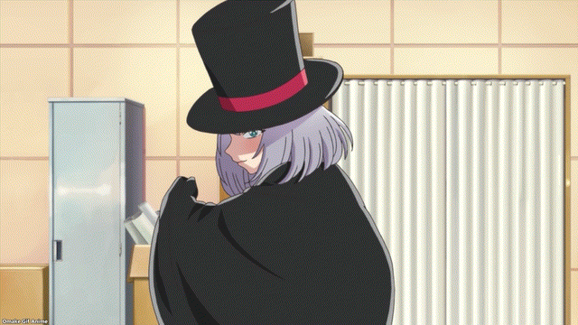 The scene that cracked my heart and made me want to root for Tejina-sempai was when Assistant-kun was buying time in front of the audience while she prepared her Mystery Box. She was so jealous that he could do a successful magic trick in front of people. Her main source of dramatic tension is that she has terrible stage fright, even if it’s just one person she’s performing for, causing all her magic performances to fail spectacularly. She’s also an unfortunate-girl type, where even her animal companions dislike her.