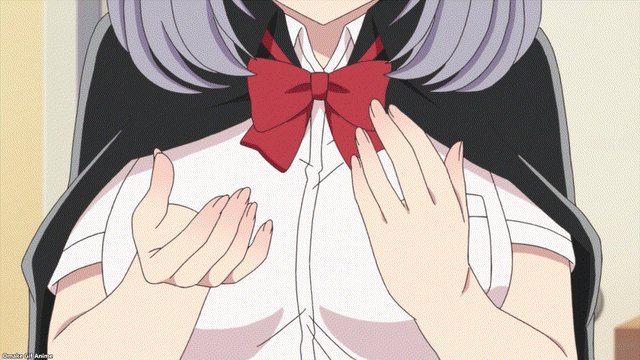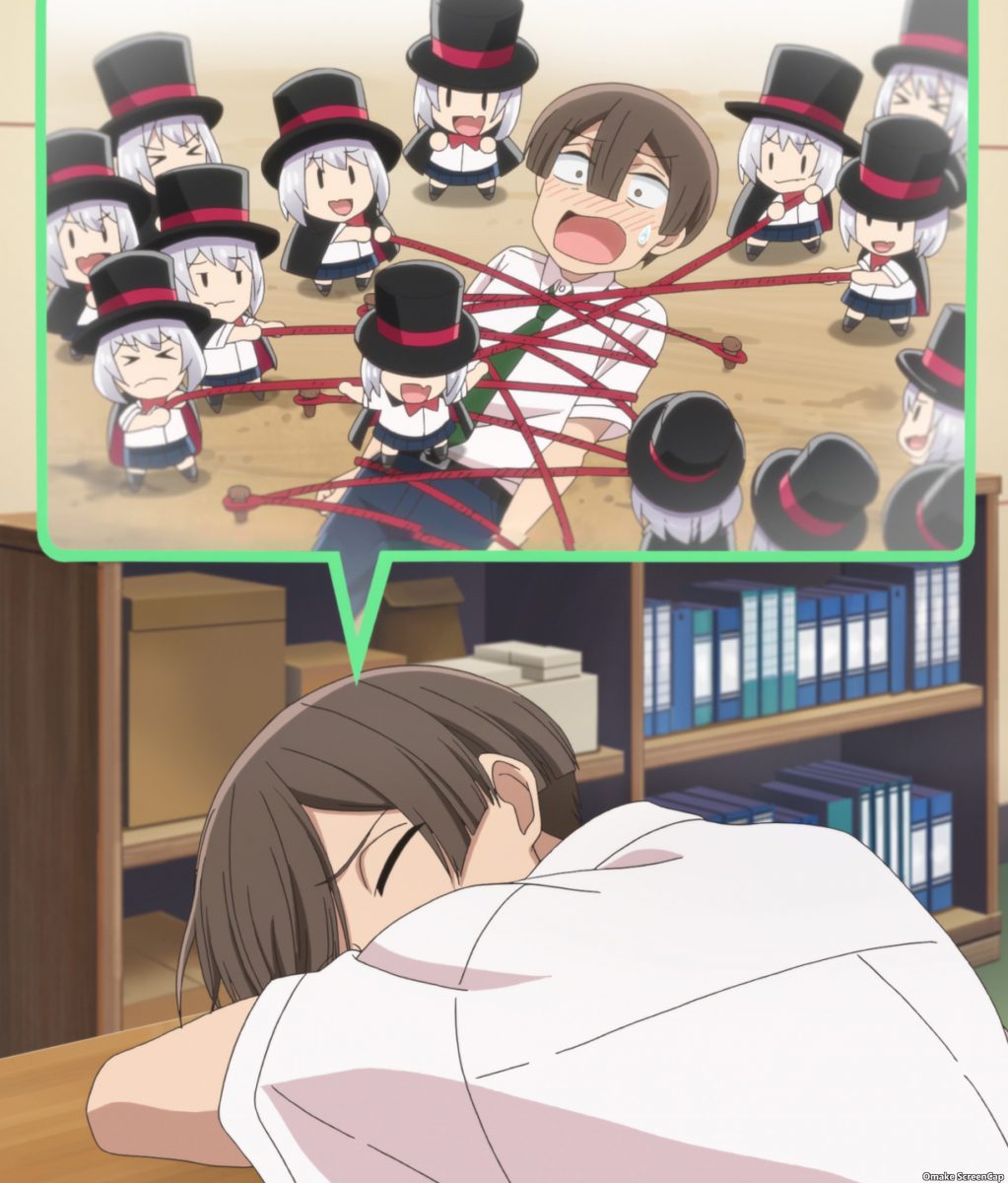 Tejina-senpai works on her stage fright in different ways while practicing magic tricks with the Magic Club in the season finale.