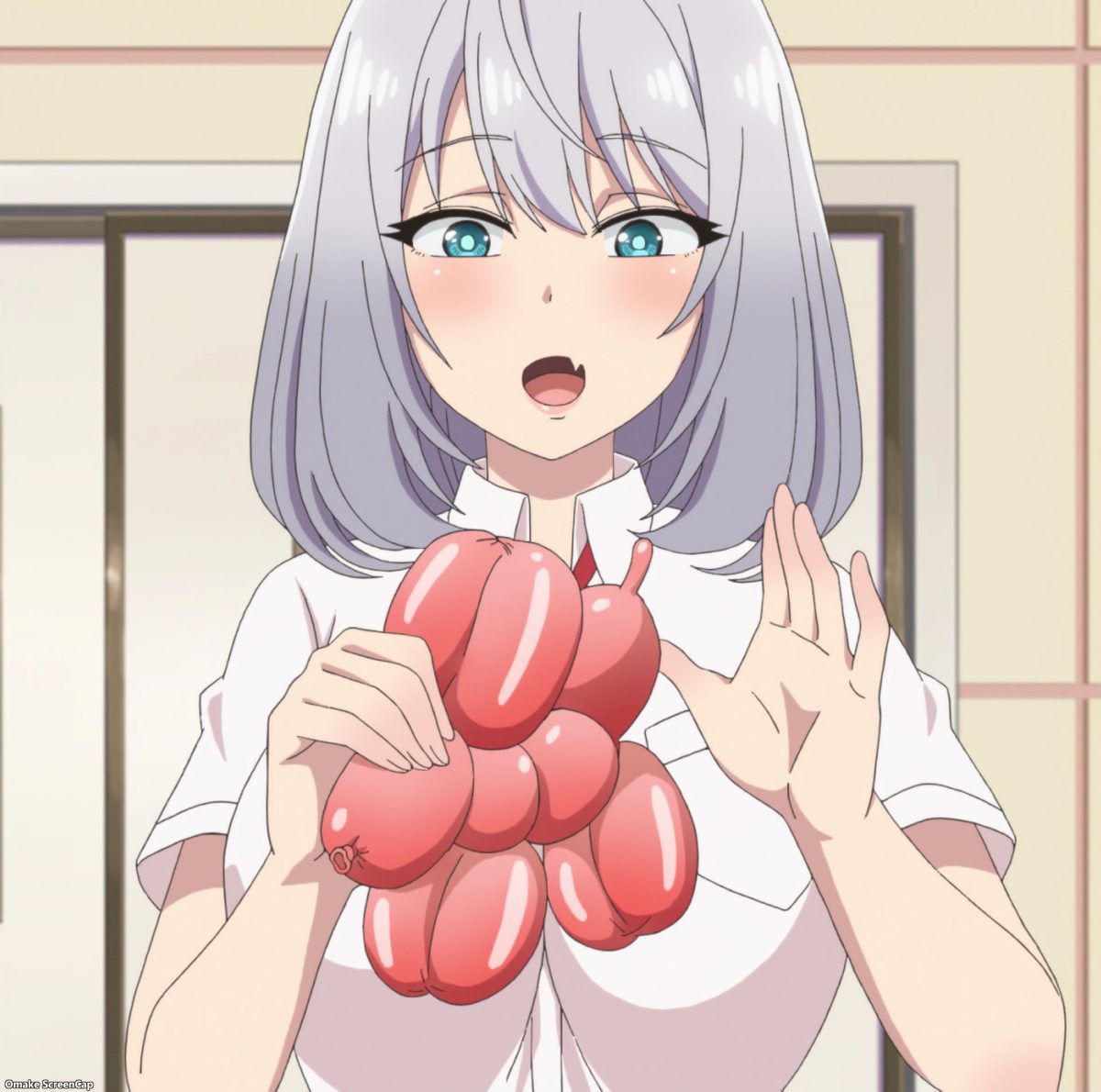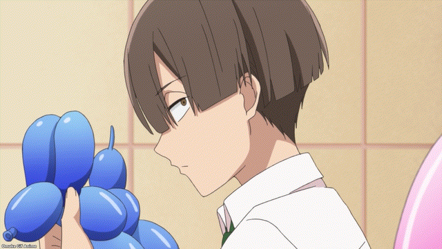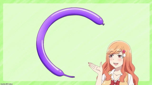 Senpai can make the balloons because she has no stage fright, but she’s still suffering from fear of the balloon popping. Aw! It popped! Somehow the ears or one set of legs survived. She made cod roe…