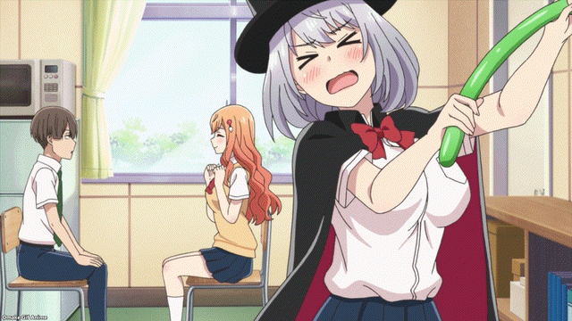 Introducing new characters to Tejina-Senpai actually answered an old question. The story we got from Saki-chan, the new third-year transfer student, was that the Magic Club was going to be disbanded if it didn’t get enough members. I can fill in the blanks that the Magic Club used to be an official club with many members, but at some point got put on probation with Tejina-senpai as its last remaining member. She needed to recruit the minimum number of club mates, or the club would be officially dissolved. This rough sketch of events is all we need to put Senpai in the Chemistry Club prep room by the grace of Madara’s sympathy. We also don’t need to worry about these details anymore because the Magic Club is saved, after it got “invaded” by new “alien” members.