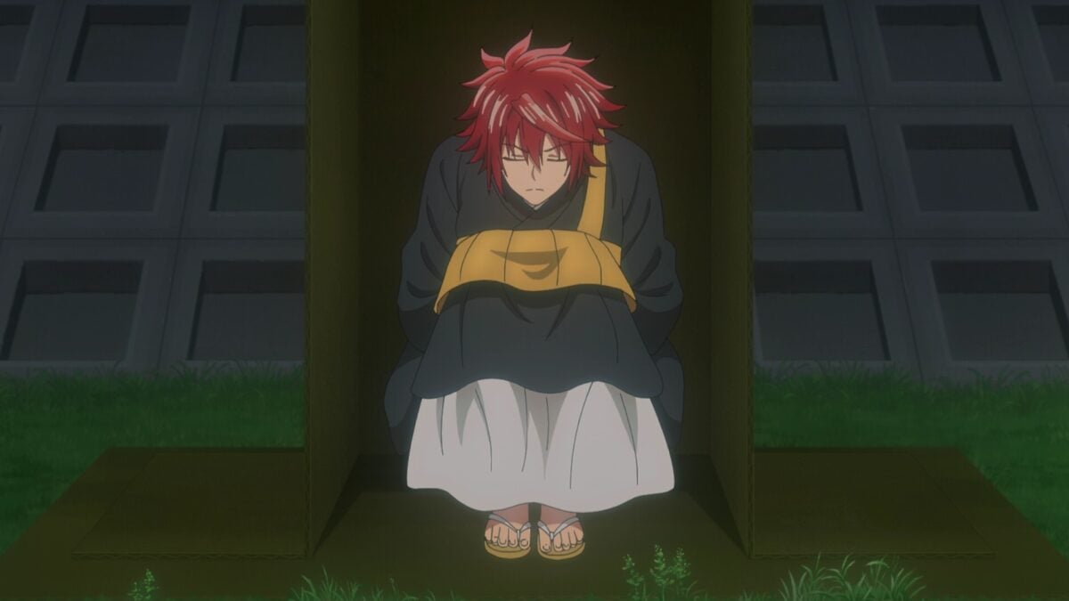 Har. Akemitsu tried to turn himself into the police for lewd behavior but made it sound like he was bragging about his good luck with women. And now he’s living under a cardboard box by the river. For TenPuru, life comes at you fast! He resembles a roadside shrine. And Yuzuki found him before he could sell his organs for fast cash. Wait, wait, wait. Are you telling me people misunderstood each other inside a comedy? I’ve never heard of such a thing! This art form surely should hit its apex after 500 years of development. What’s that? Shakespeare? Who’s that? Yuzuki thought Akemitsu was younger than she was. Nope. A 21-year-old college student is older than a seventeen-year-old high school girl. Well. She can teach him how to rely on others, pointing to the tagline in the anime title. Shouldn’t adults aspire to be independent? No!