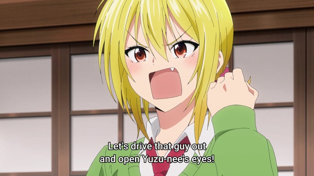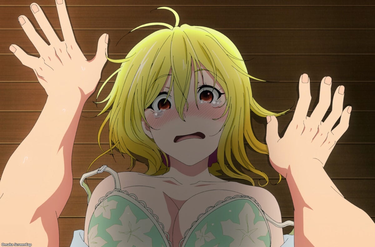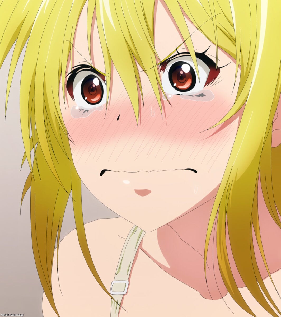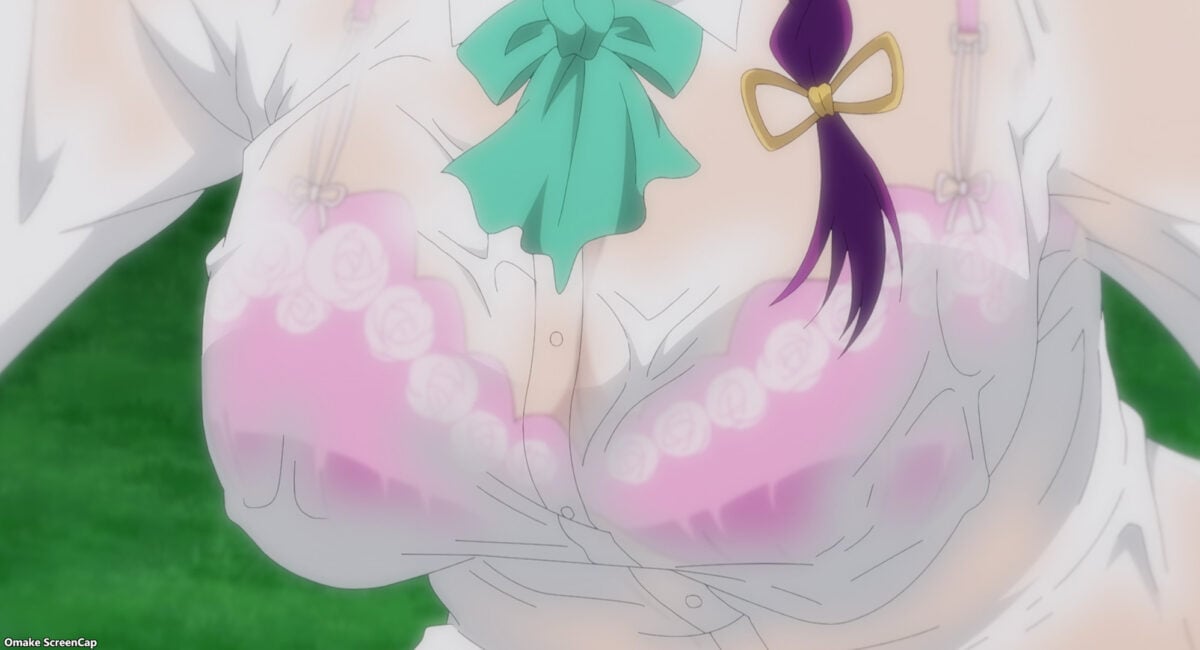 Mia is undone. Kurage claims Yuzuki used to be dumber. Yay! She said the line! “Being pervy isn’t a bad thing, you know?” Buddha had children, Kurage is the daughter of a monk, and even Yuzuki is probably pervy too! Ah. Deadpan humor. Be wary of this one. Kurage can activate Akemitsu’s lucky lecher skills remotely! Mia woke up to depravity.