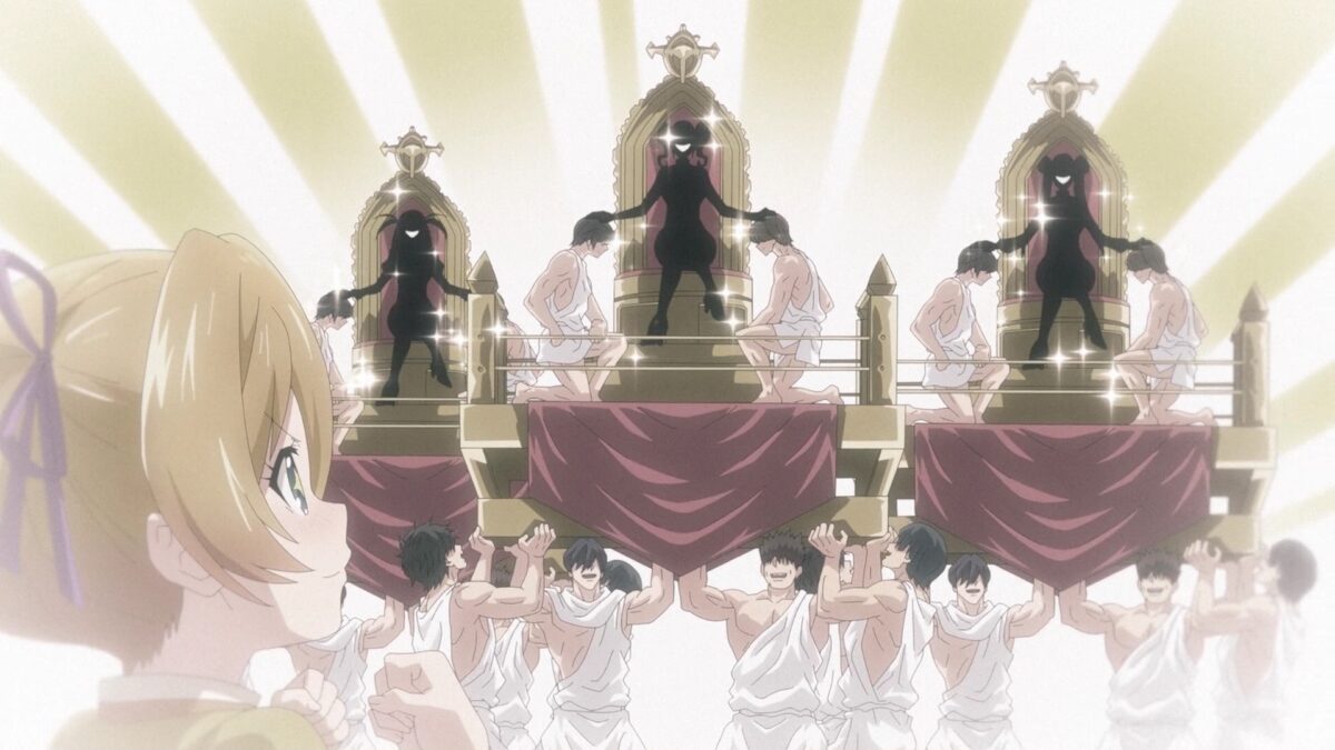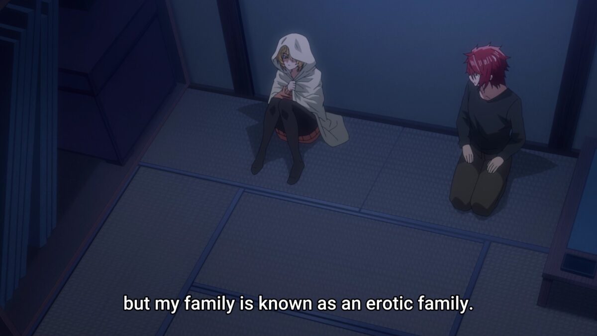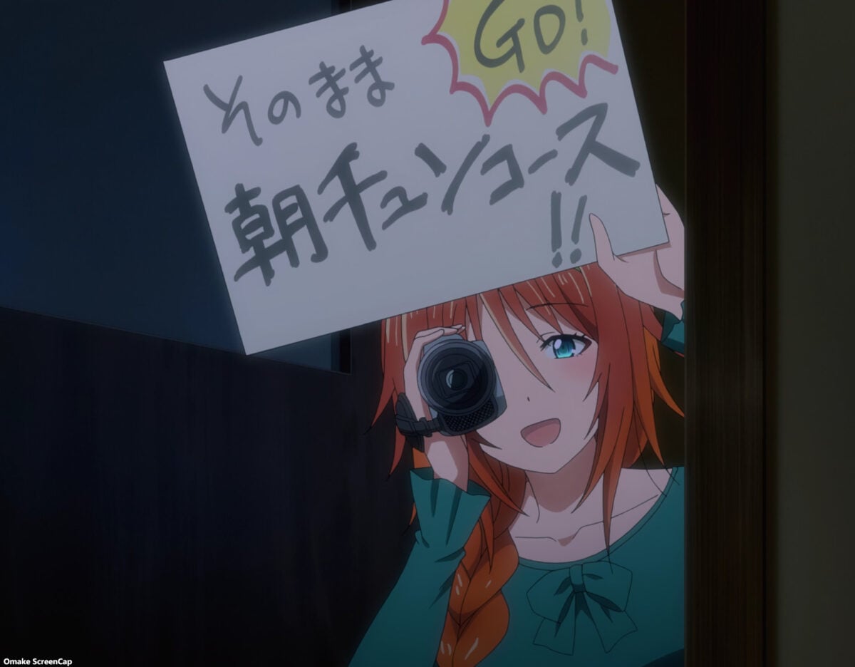 Enough of Mia’s origin story. What about Yuzuki’s arranged marriage meeting that Akemitsu hilariously destroyed in the first TenPuru episode? Postponement and Yuzuki’s late! But why is Akemitsu going with her? What is going on here? Huh. The dude has worked many jobs but still has terrible luck. They missed the bus, borrowed a moped that ran out of gas, then climbed into the back of a panel van. How? None of this makes any sense. Even the imaginary third sister explaining how dumb the pervy first sister is would not be enough. Then we end on a cliffhanger where Yuzuki will undress in front of Akemitsu. Sure. Why not?