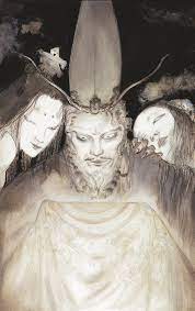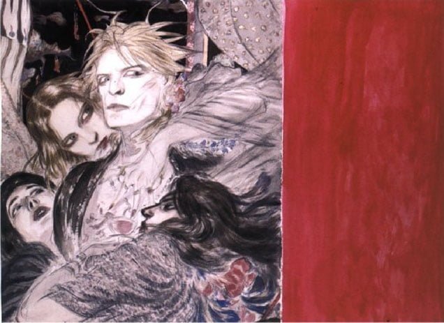 In 1999, Yoshitaka Amano and Neil Gaiman came together for his Sandman story, The Dream Hunters. Gaiman fell in love with Amano’s work after seeing his rendition of Morpheus for the tenth-anniversary poster of the series and wanted to work with him. Amano wanted to do an illustrated book rather than a comic and The Dream Hunters was born. This story was my first foray into the Sandman universe and, as a yokai enthusiast, this was a significant starting point for me. Amano breathed life into Gaiman’s work again for the first part of his short story, The Return of the Thin White Duke. Its inspiration was the late David Bowie and his wife Iman. I never knew that this work existed until I started researching Amano’s career. The story is available on Gaiman’s website. Amano’s Bowie embodies that ethereal nature that David Bowie’s stage and screen personas had and they are cool as hell.