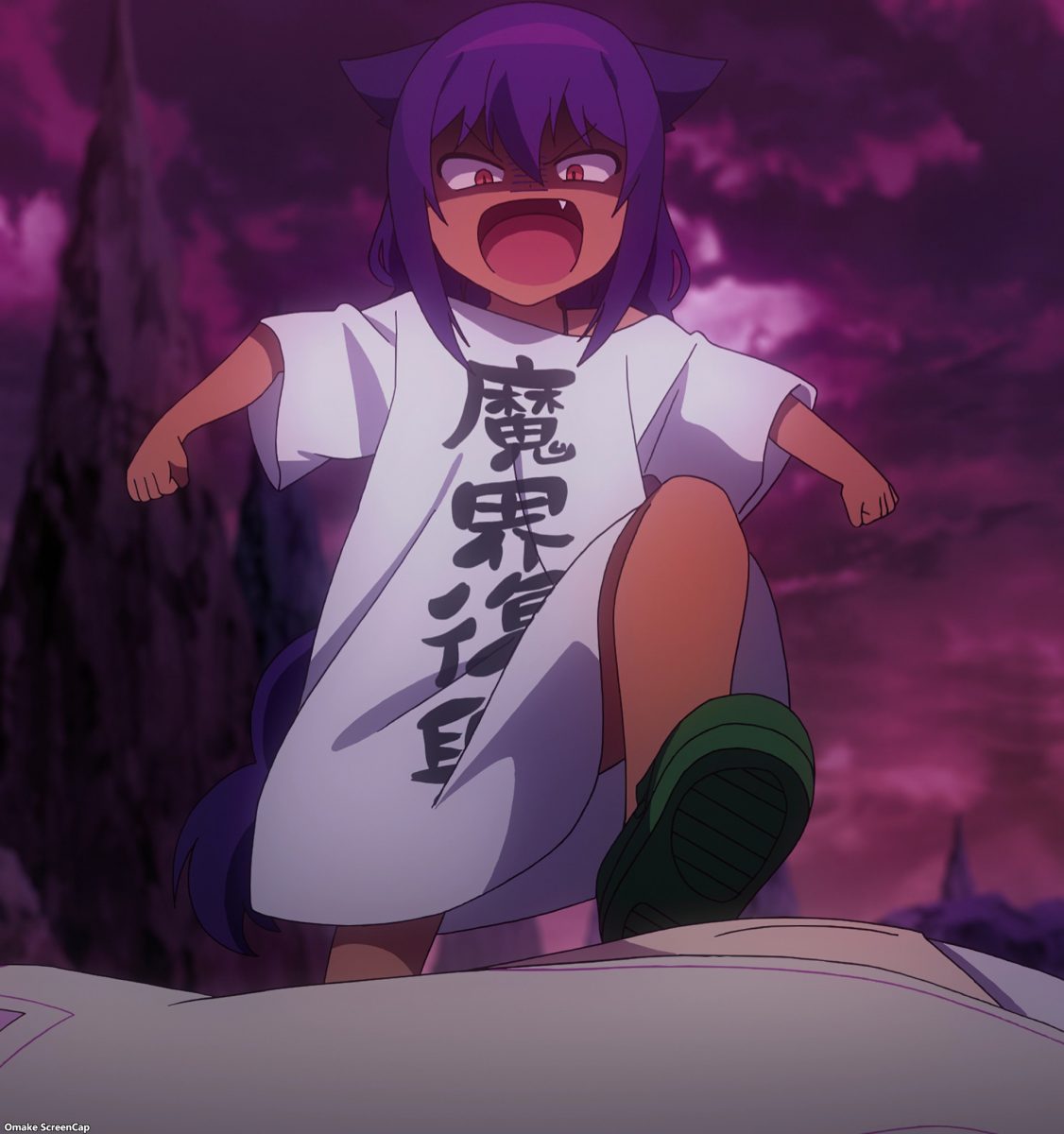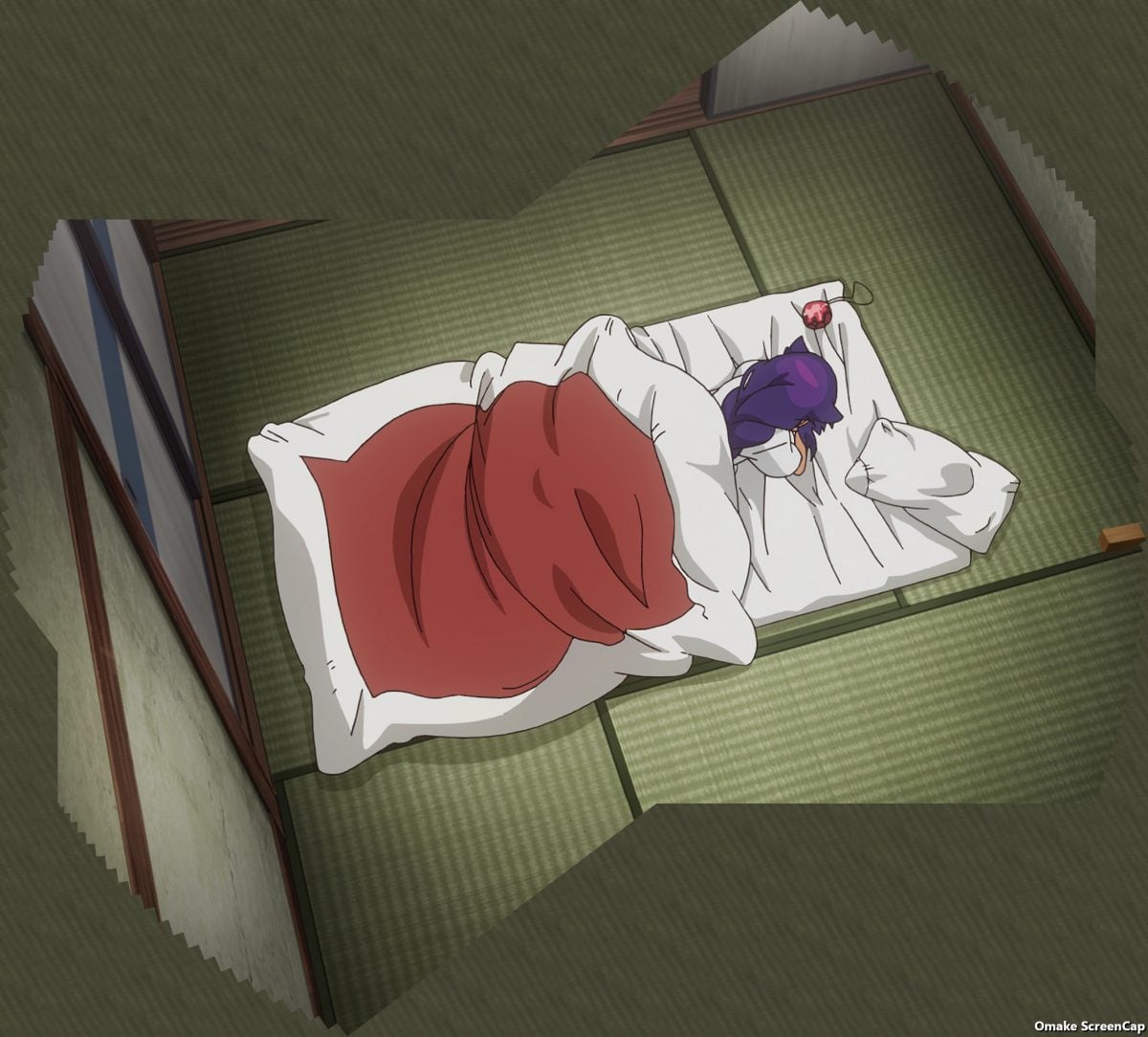 Landlady to the rescue! Well, cops to the rescue. The Magical Girl just committed trespassing and strongarm robbery. Some hero of justice she turned out to be. She’s suspicious! Hahaha! No, clearly, she’s cute! She claims to protect people from the calamites the mana crystals cause. Right. Like barking shins and making embarrassing magical girl poses in front of people… I like how Jahy is honest with herself about her fears and insecurities. Was she this introspective as the all-powerful Number Two? The ultimate insult: stomping on someone with Crocs. The Great Jahy has an evil expression when she dreams.