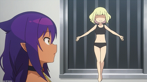Uh oh. That is not the Store Manager! The Magical Girl found Jahy! She’s here for the mana crystal! Why is the background music so ominous? Hilarious. The Magical Girl’s voice actor is Sumire Uesaka, who recently brought another tanned beauty to life, Nagatoro, in Don’t Toy with Me, Miss Nagatoro! The Magical Girl is strong! But Jahy is too weak to be the Great Jahy. The Magical Girl may as well be a muscle-bound math teacher with a beard. Hahaha! Jahy firmly believes her hair tufts have bones in her skull.