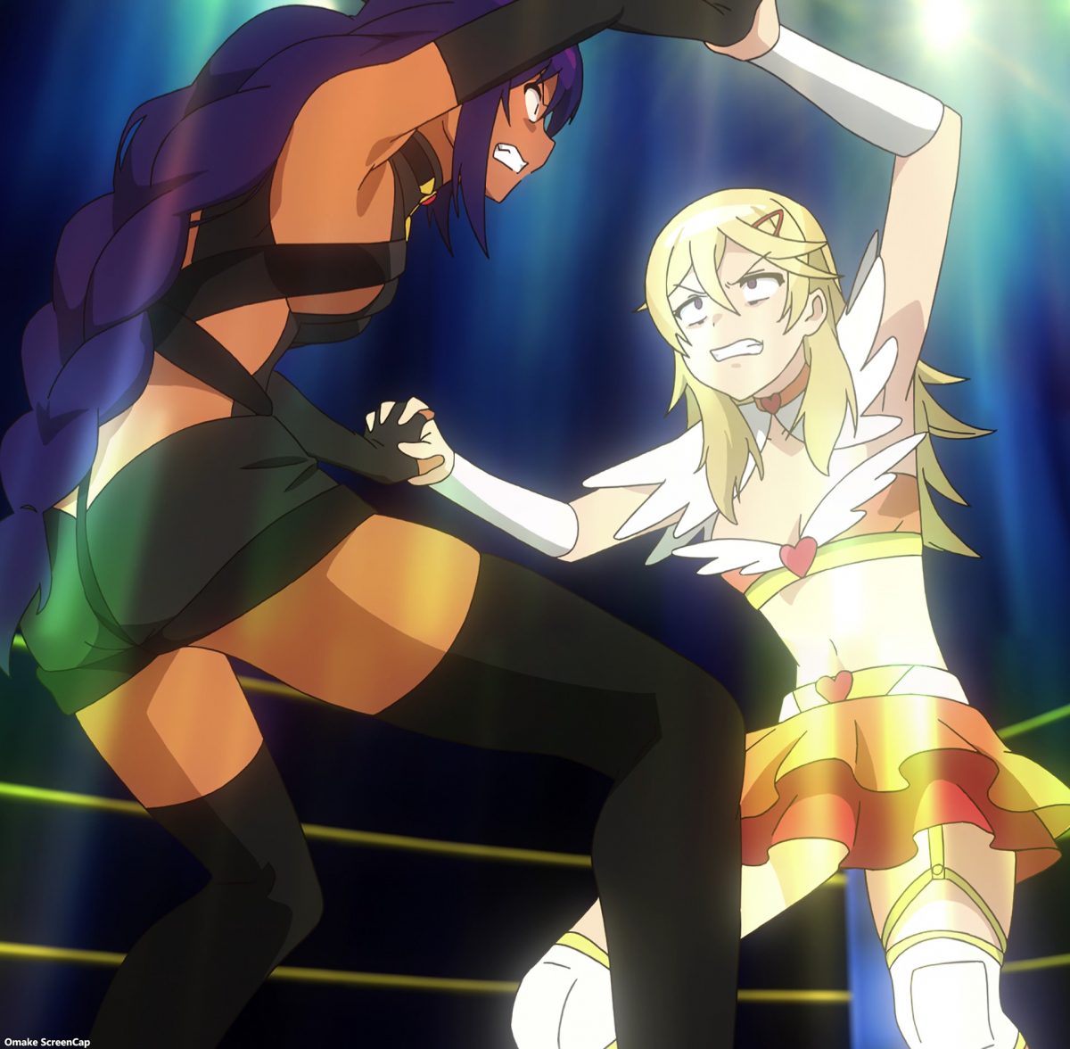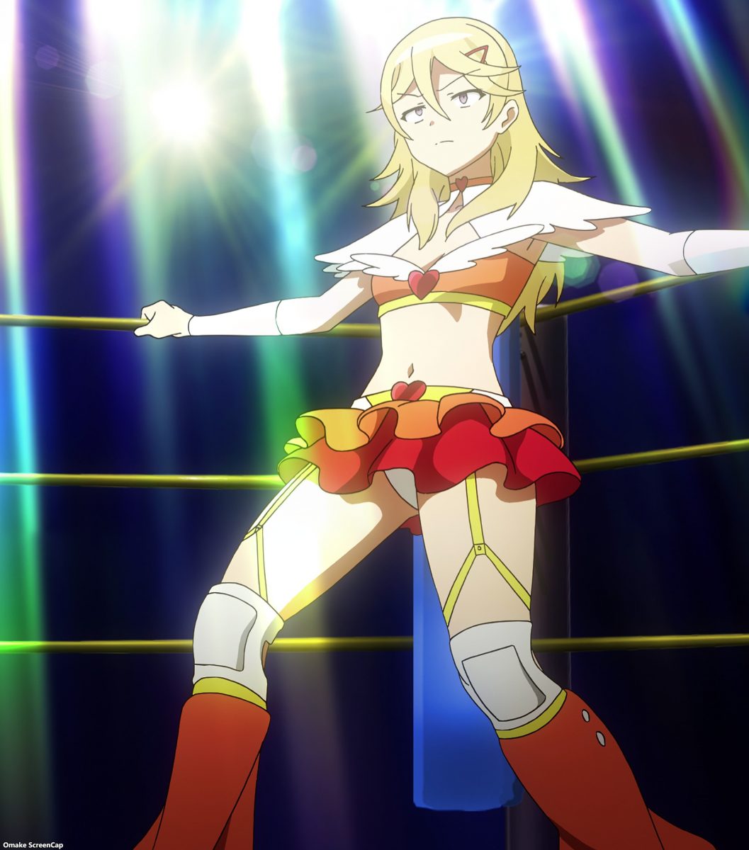 Pro wrestling omake! Landlady versus Jahy, of course. The stakes are rent payments, of course. Landlady’s costume is a magical girl. The Great Jahy is a mystery that wants to “restore the dark realm.” Oh, yes! Her wrestling costume answers the questions on what her booty shorts hide. These wrestling moves are from the opening credits. Landlady needs Jahy to pay her rent, and Jahy needs to refuse her. Who has the sturdier head? It’s a draw!