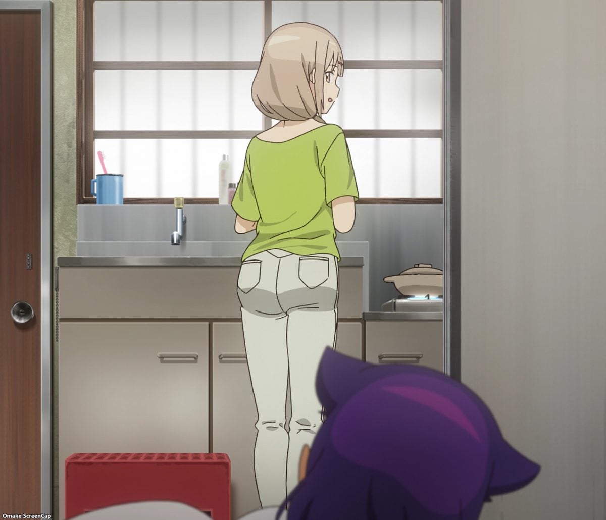 Part two: The Great Jahy Will Not Catch a Cold! Oh, yes, she will. Landlady performs proper mask protocols. If you’re sick, stay home and wear a mask. And Jahy caught a cold for the first time. Was it because she wears so little? I’m sure Druj would love to care for a sick, defenseless Jahy, but the Great Jahy’s pride won’t allow for that. Aw. Store Manager came over to do the sick-visit rituals. Slice-of-life healing anime music plays in the background. Jahy learns a life lesson for the human world. Head pats have healing power too.