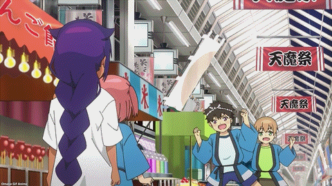 That’s the end of the story arc about the twin sisters of creation and destruction. Time to have fun at the shopping district’s festival. The portable shrine procession celebrates Tenma. He’s the demon of sensual desire in Buddhist mythology. Hey! That’s Jahy, the deva of lasciviousness in Zoroastrianism. Oh. We’re ending The Great Jahy season with Kokoro. She wasn’t present during all the Dark Realm stuff, so this is a healing moment for Jahy. Ha. Jahy will tag along with Kokoro to collect free stuff. Boo! Stinky boys ruin Jahy and Kokoro’s date. Here comes Jahy’s pride to rile herself up. I’m smiling so big at this. Jahy’s voice is the loudest celebrating herself! She won the children’s prize. What treasures are in that bag? Uh, that’s excellent loot for Kokoro, not so for the materialistic Jahy. I hope she shares the toys with Kokoro.