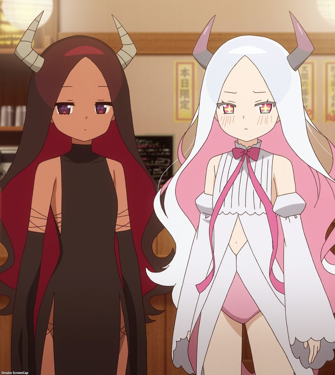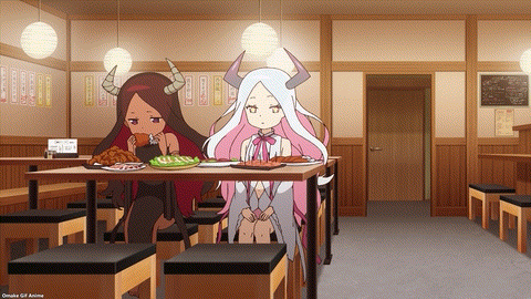 Hey, we’re cleaning up from the last episode. Literally! The twin sisters of creation and destruction are sticking around to celebrate Jahy’s own restaurant. Hahaha, of course! Jahy forgot about that! Weird. Suu can only take shape around the Store Manager. Is Maou the same way, that she can only take shape near Kyouko? Ah, here’s Druj with her proposed locations for Craft Pub Jahy. Hm, hm, none of those places fit the atmosphere of a gastropub… Typical Druj. Jahy lets her handle it. Oh. This is how Jahy stays working at Craft Pub Maou in The Great Jahy. I hope Jahy gets a percentage from Druj’s upscale restaurant.