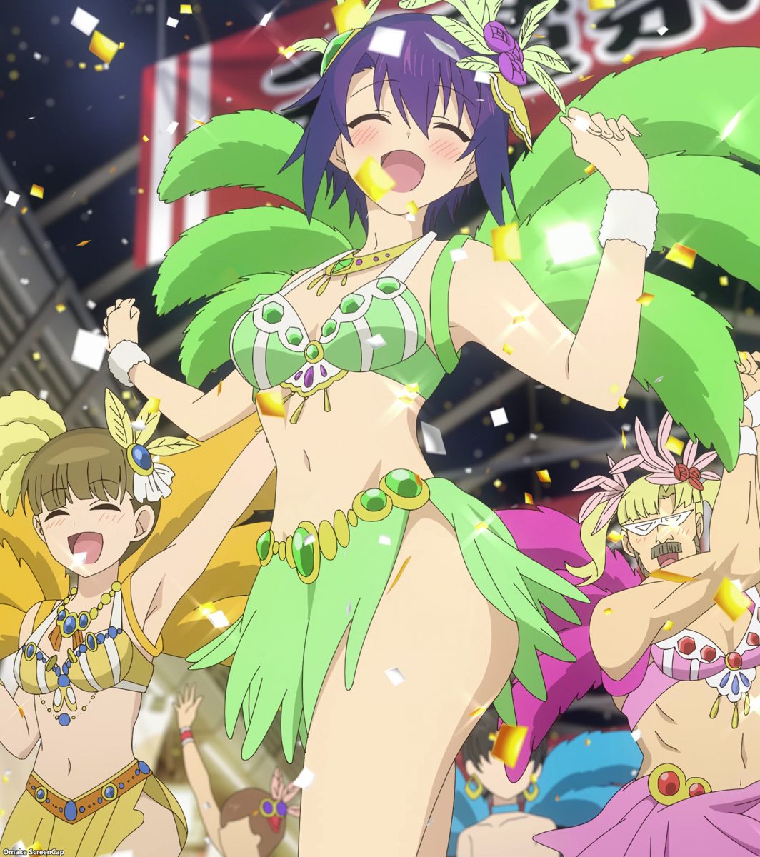 Yay! The Magnificent Saurva also shows up in The Great Jahy season finale. She’ll do anything for the Store Manager. Funny! Saurva works so hard celebrating a demon of desire. Wow, this Tenma Festival lasts all day and night. That’s right. The Landlady is pleasant to everyone except Jahy! She’ll be nice to you too, Saurva. Bang those drums, get pats on the head. What? There’s more? A lust demon festival should have Carnival outfits and samba. And Macho Samba! Hahaha! Jahy still can’t remember Saurva’s name.