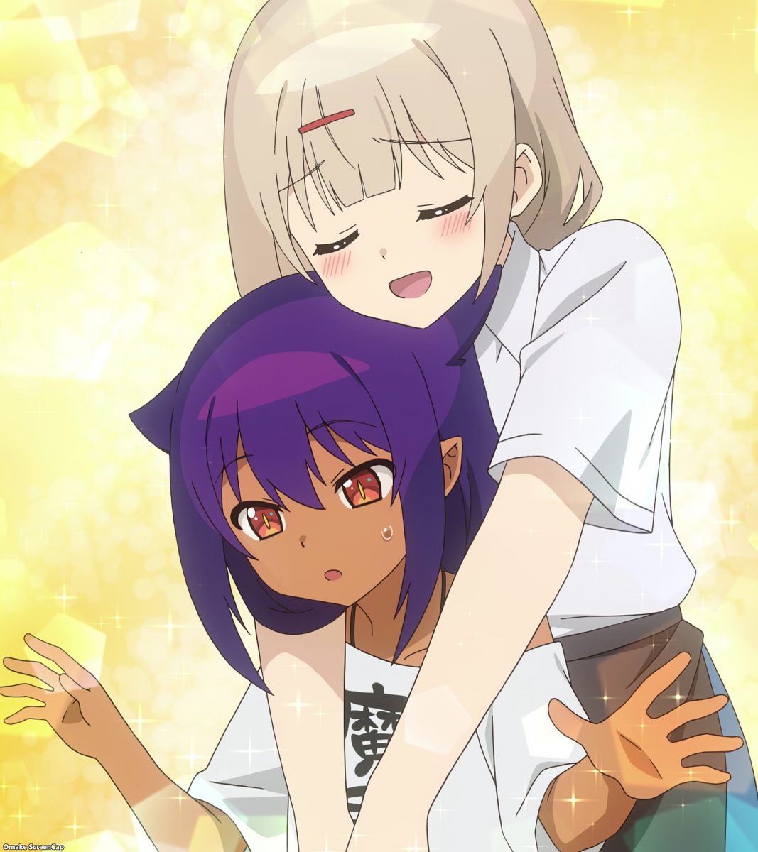 Besides slice-of-life comedy, The Great Jahy fits into more anime genres. It was a reverse isekai, yuri harem, and a magical girl farce. During the first half of its run, I suspected the show would change into a parody of other genres because its odd omakes took on sci-fi, manga writing, and pro wrestling. The anime settled into a more comfortable flow of slice-of-life antics as the cast grew bigger. The Great Jahy fits into the yuri harem genre because there were no hetero love interests. The recurring male characters were a cross-dressing macho man and the cop who arrested Jahy. All the primary relationships had yuri subtexts.