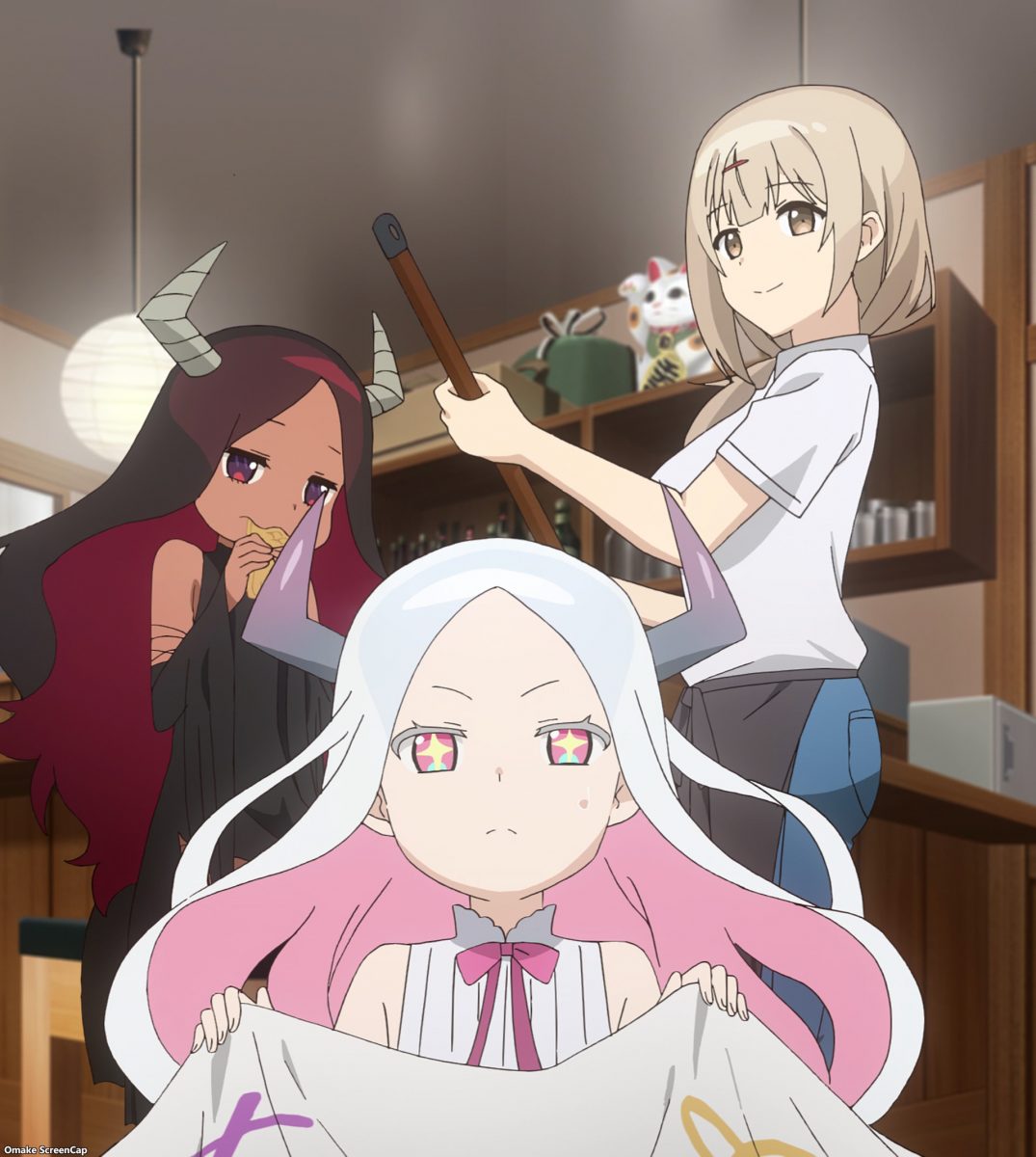 The season finale for The Great Jahy felt like a slice-of-life OVA. The new character of Suu, Maou’s twin sister, quickly integrated into Jahy’s circle of friends. The formula for this show is that a new regular character gets slice-of-life comedy as soon as possible. Suu had her time to shine and show off her tsundere traits. Then Jahy’s restaurant plot ended even quicker. We had two-thirds of an episode left to relax, laugh, and say goodbye to our favorite characters.