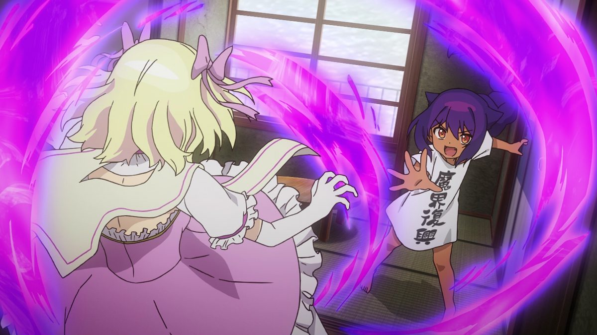 The Great Jahy makes its version of the Home Alone movies. The hole in Jahy’s logic is that the Magical Girl already stole her fist-sized mana crystal. She has no reason to come to her apartment again. Oh well, let’s make some jokes about homemade traps and how ineffective they would be. Har. Jahy still wants to use her “stick that lights up” against the Magical Girl.