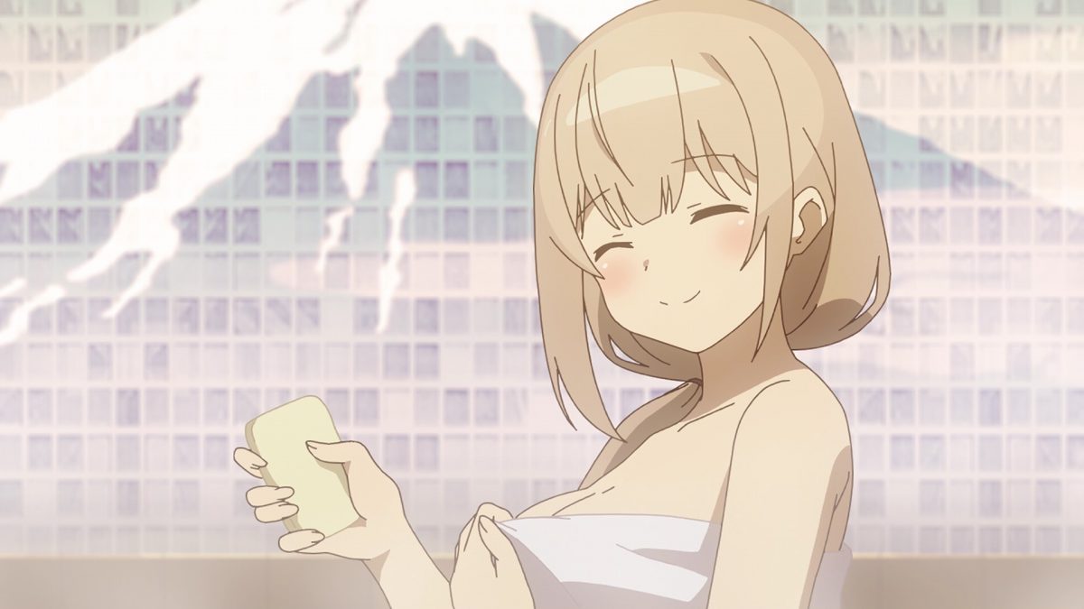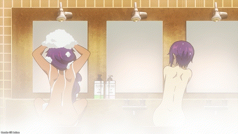 Now’s the time to strike! Not. Saurva’s unluckiness struck her instead. She slipped on a bar of soap instead of the Great Jahy’s banana peel. Ooh. Soft landing. Oh? Does Saurva swing that way? Or does she simply admire the goddess that is the Store Manager? Let’s go with the latter because I’d be in a daze after landing on the Store Manager’s ample bosom too. Oh, yeah. Saurva will come again to the bathhouse, for sure.