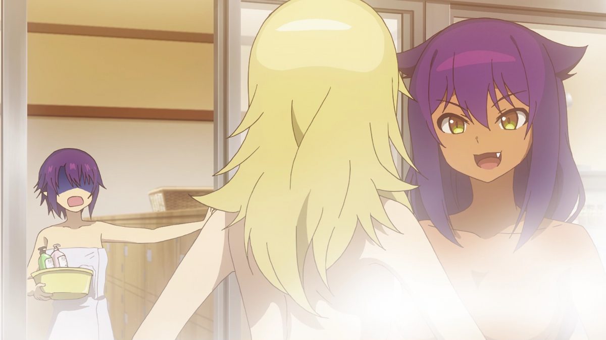 Saurva experienced the Store Manager’s “blessings” firsthand, and they put her mind at ease. I gratefully appreciated The Great Jahy supplying us with two episodes of Jahy fanservice from the same bathhouse scene. The Store Manager also increased her yuri harem by one more demon from the Dark Realm.