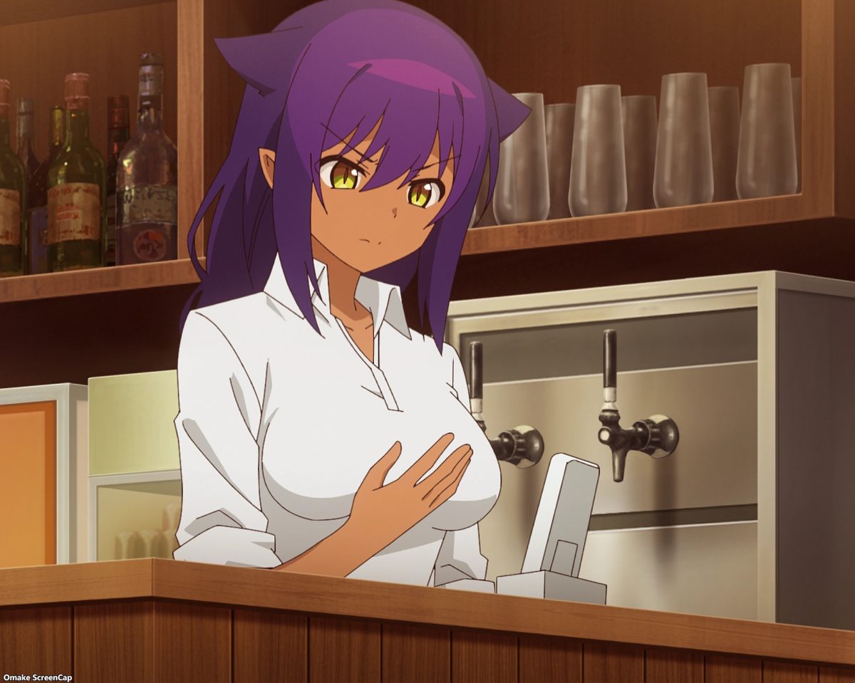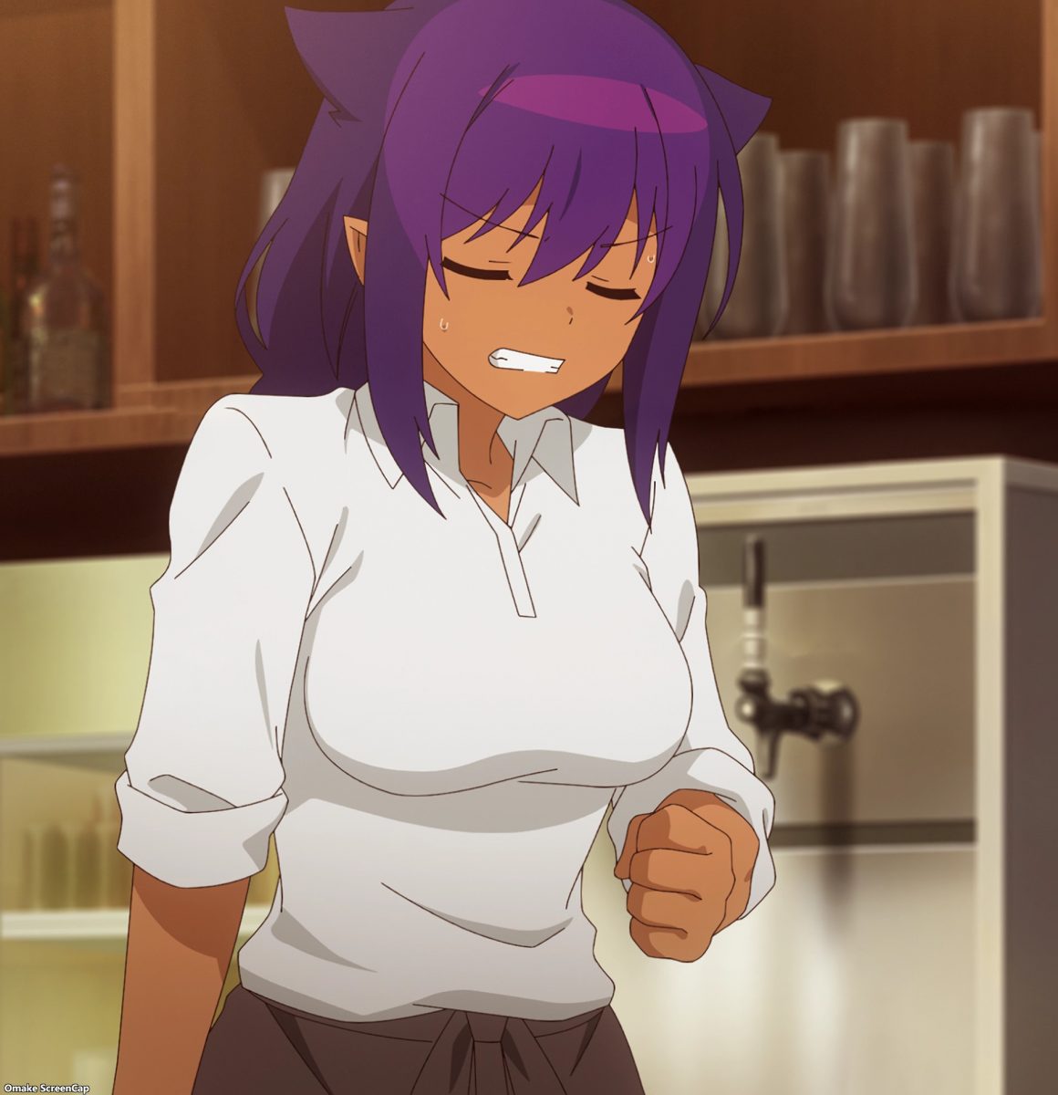 Next up, Jahy is angry with herself for employing a fake cheery attitude during work. She’s in the service and food industry, so false smiles are part of the job description. Ah. Jahy feels that getting along with humans is a sign of weakness. That’s not her issue, though. She feels frustrated that she isn’t closer to her goal of restoring the Dark Realm even though the toil of work is necessary to support herself. It takes up a lot of time, which makes her lose perspective. Yeah, The Great Jahy is halfway over, and Jahy still only has her original mana crystal. The Store Manager thinks that Jahy is beginning to enjoy work. Wrong! It’s a necessary evil to achieve her goals! Jahy likes praise, which she’s getting for doing a superb job as a shift manager. Managing one employee. Herself. But she’d rather receive recognition for being a dark, tall, and sexy demoness wielding her power over lesser beings. Baby steps, Jahy-sama, baby steps.