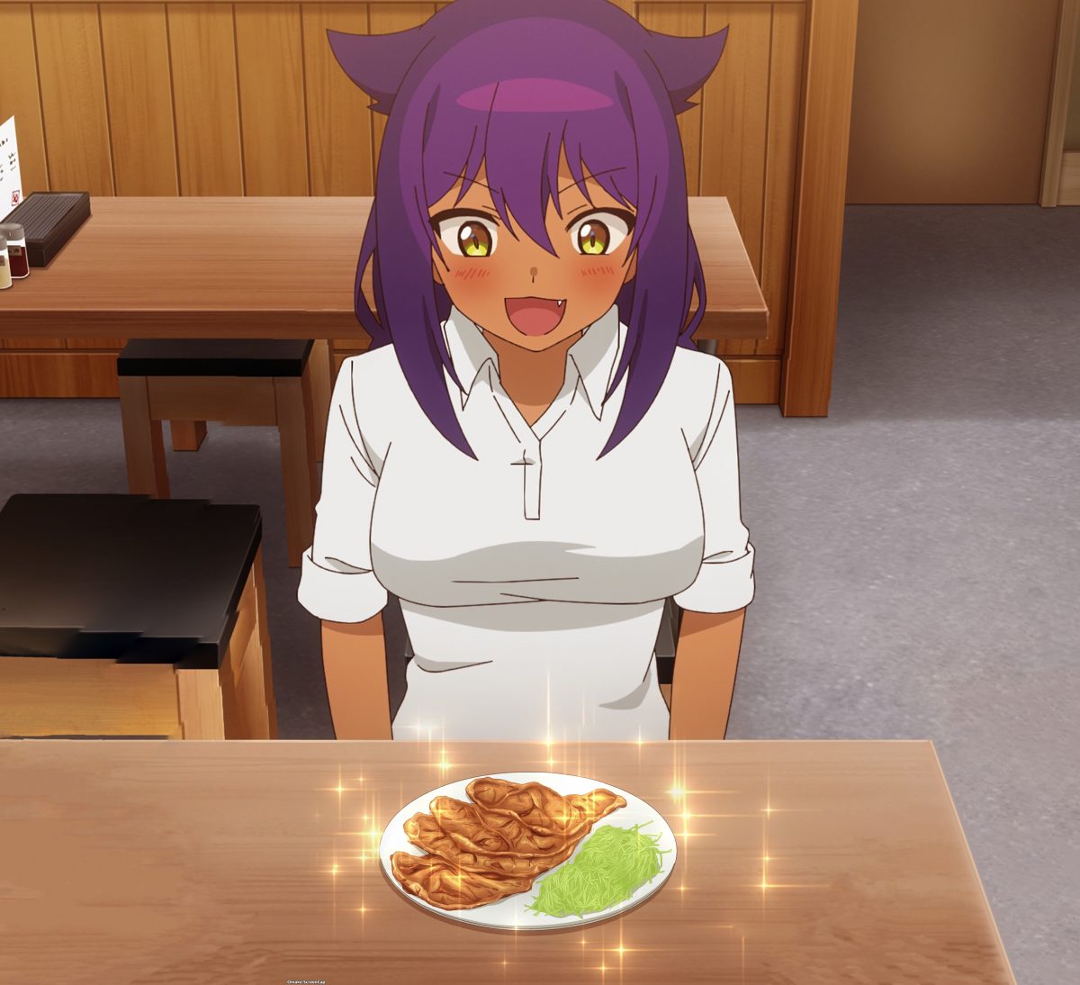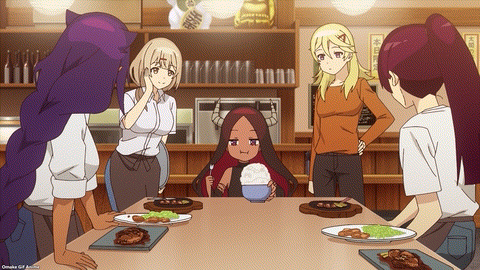 Jahy won’t volunteer for extra work, but if it’s for free food, then sign her up! The Great Jahy becomes Shokugeki no Jahy. Every high school girl is a closet foodie and cuisine critic. Jahy finds the fish dish as delicious as Kyouko does, but Jahy hatches a plot. Manipulate the Store Manager into fixing her expensive meat entrées! Savory pork is fine, but Jahy wants to make a moon shot. Wagyu beef! The Store Manager fell into Jahy’s pace.