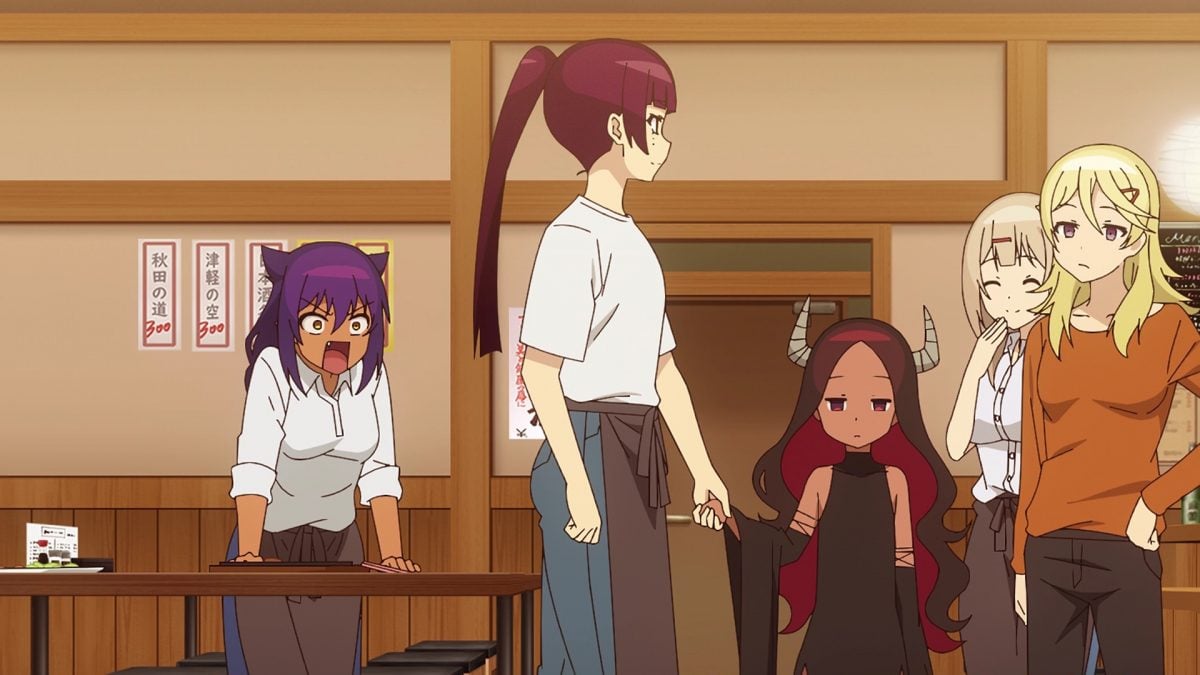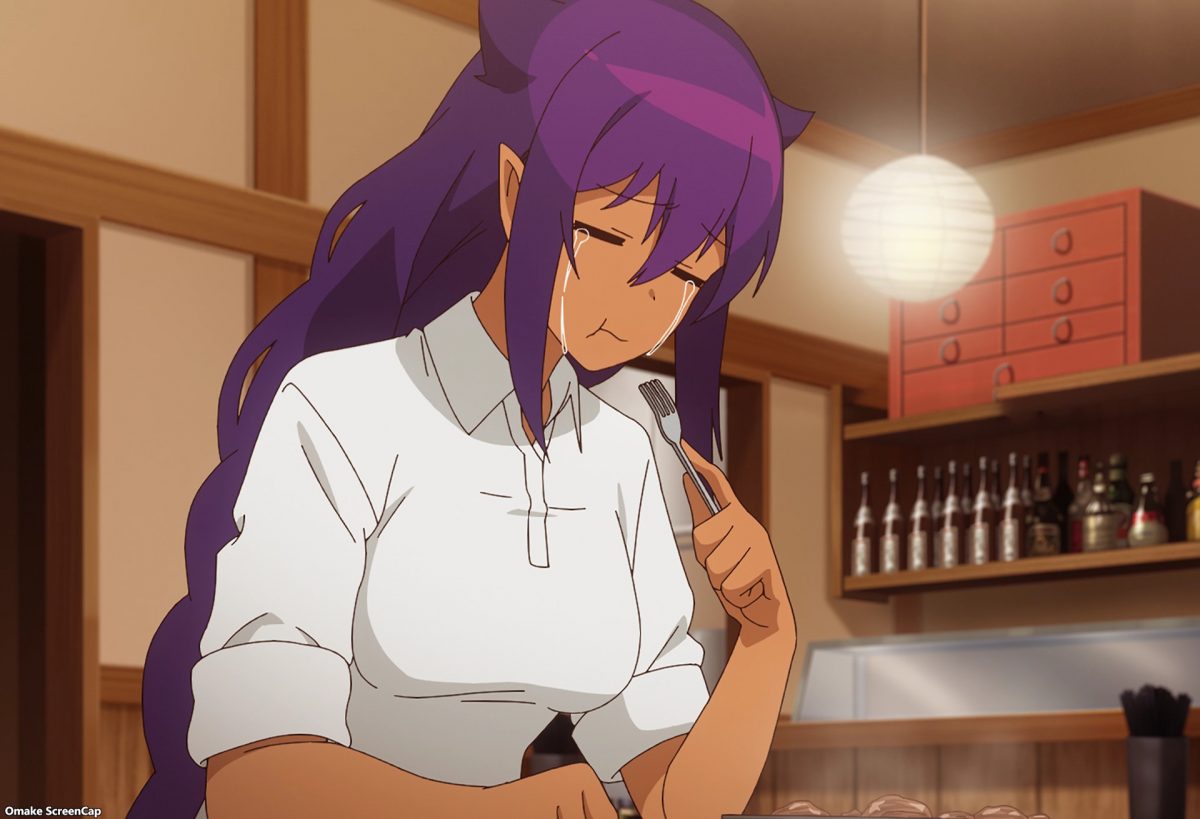 Jahy needs a break from Kyouko following her everywhere. Her only sanctuary is her workplace. How ironic. Of course, the writers of The Great Jahy won’t let Jahy rest. The Store Manager just hired Kyouko as another part-timer! After dismissing Jahy’s paranoid accusations about Kyouko’s motivations to work at the Craft Pub Maou, Kyouko explained why she needs money. Yup. The Demon Lord exorbitantly increased her food bill. Jahy relates to the cruelty of this human world.