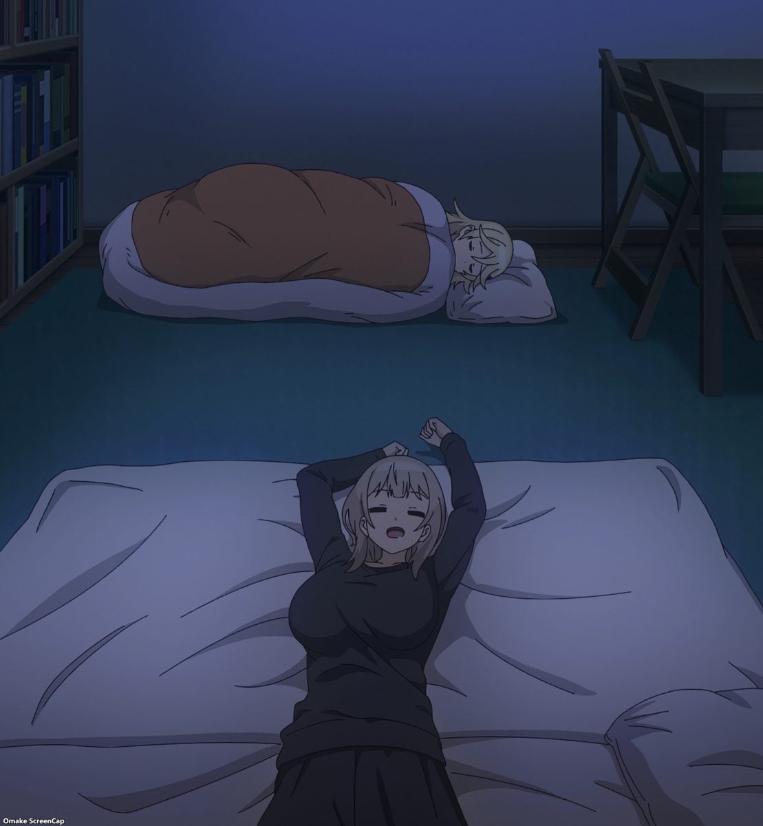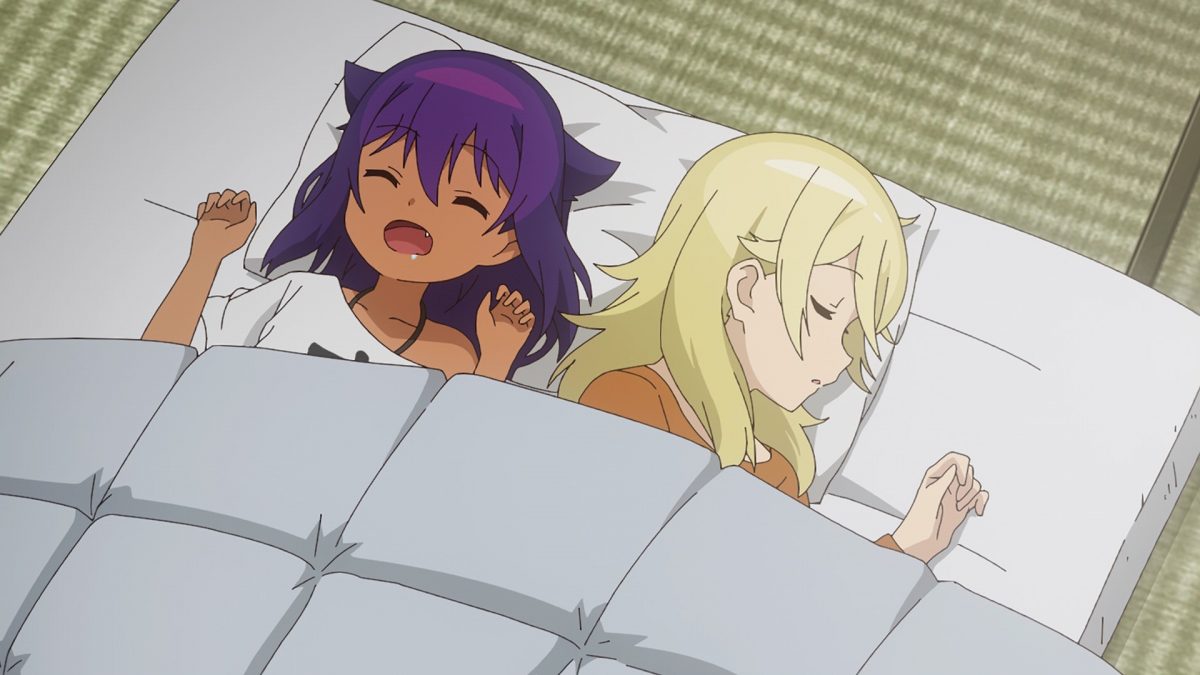 Jahy needs new bedding. The Great Jahy takes another crack at showing Jahy overspending at the home goods store. Except, she successfully shopped for a futon. Human beds are scarily comfortable. Yay! Sleepover episode! Hahaha! The Store Manager just wanted to play dress-up with her new Jahy doll. Oh? Jahy started growing as she collected more mana crystals. That makes sense. Druj can hold her adult form continuously. I wonder how long she can stay in her max-power maid demon form. Ah. This is a long way to call back on the Landlady stealing Jahy’s covers. The Store Manager has the worst sleeping habits of the two sisters.