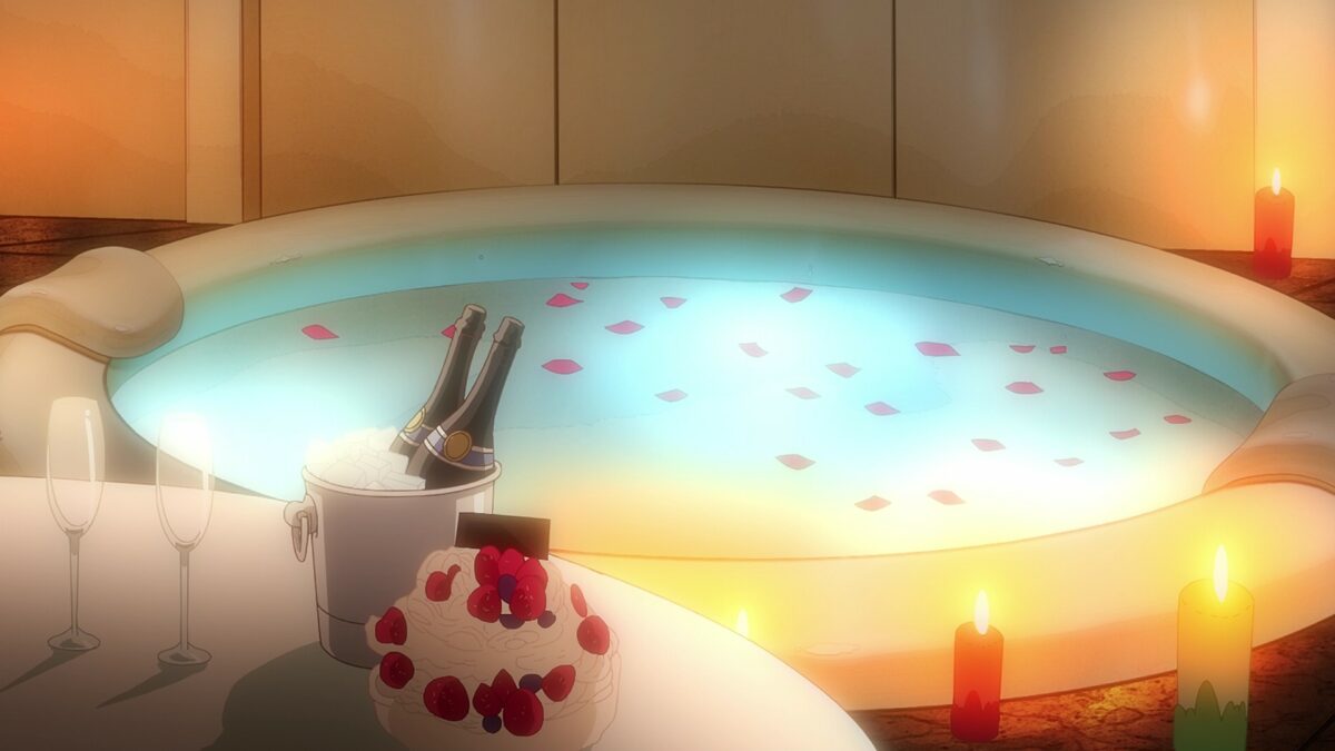 Ah. Natsume wants Yuuri’s help in throwing a surprise Christmas party for Lilith. Ooh, plotting! Yuuri will tell Lilith he’s going to Tsukasa’s house for a Christmas party while Natsume takes Lilith on a date. Everybody wins in The Mysterious Maid when Lilith comes back with Natsume! Aw. Yuuri can’t lie to Lilith for long. Tsukasa is enthusiastically on board with Yuuri’s Christmas plot. But Tsukasa’s idea of a Christmas Eve date reads like an updated version of Pretty Woman. That champagne, Christmas cake, and rose petals in a hot tub are age-restricted for everyone involved. But putting together a Christmas party is a-ok.