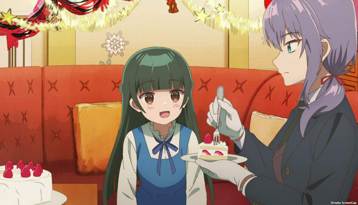 It’s Christmastime already in The Maid I Hired Recently is Mysterious. Ah. It’s the Christmas episode! Tsukasa is so nosy. She wants the details between Yuuri and Lilith! Yuuri is still in limbo. He told Lilith he loves her, but the suspicious maid hasn’t replied with her feelings yet. Instead of telling Tsukasa about that, Yuuri explains how Natsume is a “new family member.” Har. Tsukasa knows love triangles! Natsume is Yuuri’s love rival for Lilith’s affection.