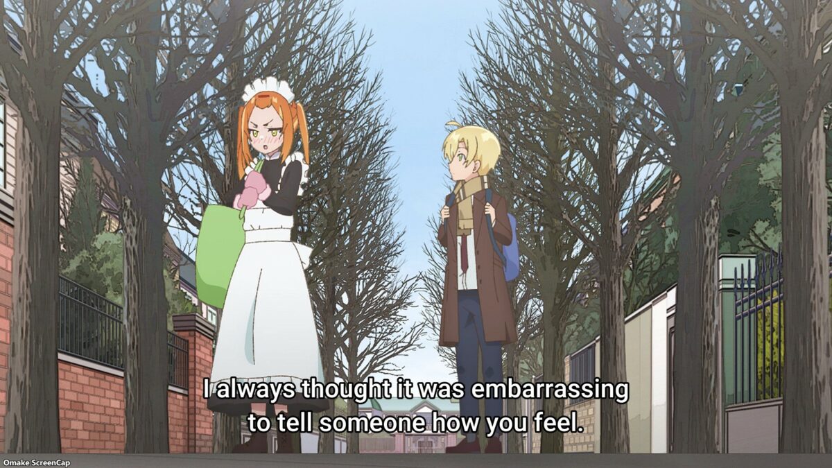 Confirmed. The pink yarn that Yuuri knitted in the last episode was a present of mittens for Natsume. Talk about knitting bonds with your natural enemy. Yuuri doesn’t hold back on anything in The Mysterious Maid. He makes Lilith blush with his litany of how she makes him feel. But he’ll also spit facts at Natsume about her laziness. There we go! The twin-tailed tsundere went into her dere-dere mode with Yuuri. Don’t get Yuuri started. He’ll make Natsume confess her feelings to her master next. Good for Natsume. She told Yuuri point-blank that there are different kinds of love. But telling someone is still embarrassing. Yuuri does not have that problem.