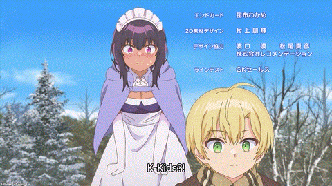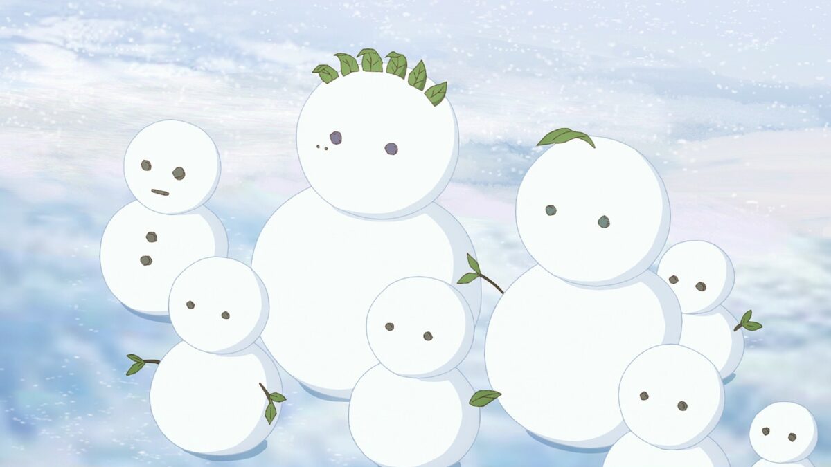 It’s epilogue time for The Maid I Hired Recently is Mysterious. Lilith made a snowman of Yuuri, so Yuuri made one of her. I see the coal moles on her cheek! And all the little snow children! A warm ending. Original creator Wakame Konbu made an end card for the audience.
