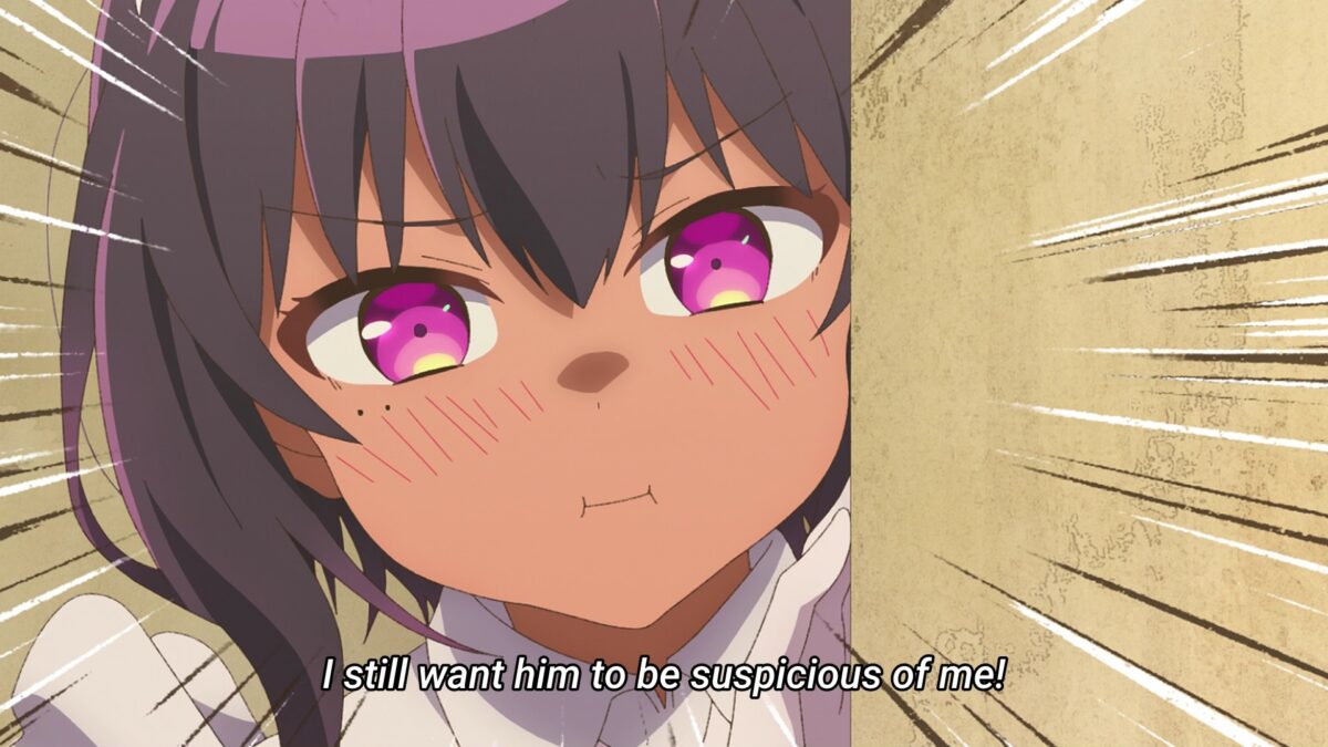 Ah. Lilith thinks she needs to act more grown up too. She’s flirting again, not acting like an adult. The mysterious maid is not suspicious! Here comes the string of outrageous compliments. Lilith’s squealing is too cute! She can’t get the hang of acting maturely. It feels seductive and knowing. Her giggling doesn’t help either. Suspicious! Yuuri’s love bombs make her happy, though. Next, Lilith tries playing a game with Yuuri. Her invitation sounds suggestive! Ack! Yuuri tangled himself up in his paranoid plots. Just play a game.