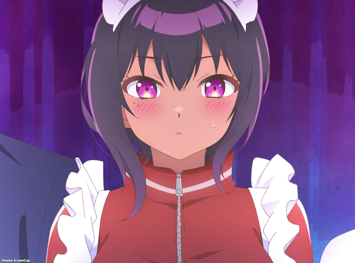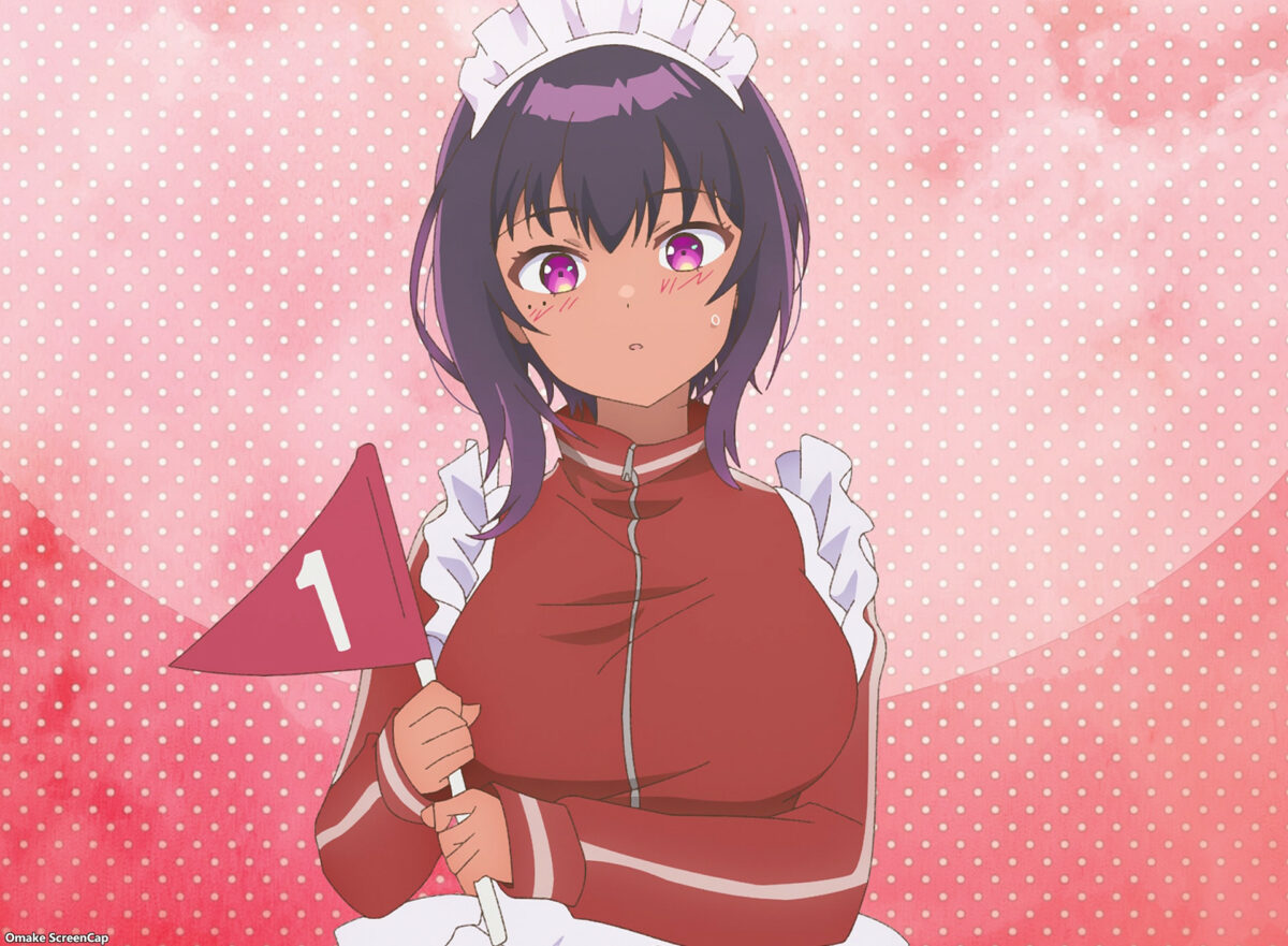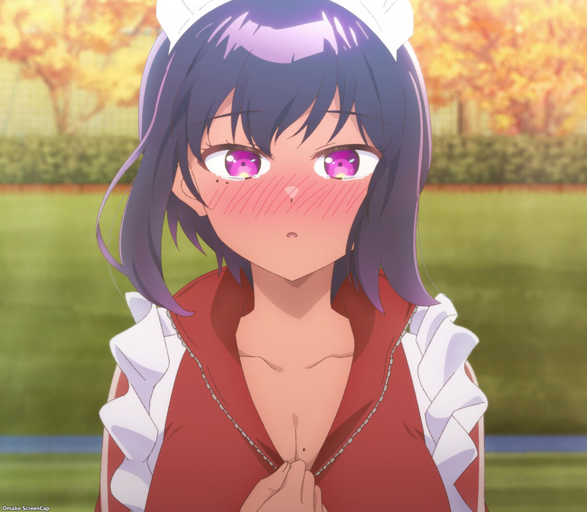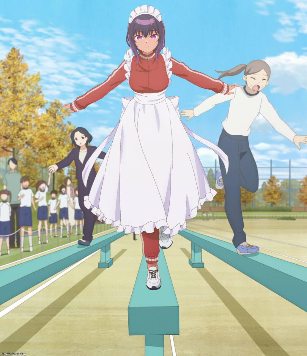 Oh? Fujisaki shows concern that Lilith makes her presence public. Foreshadowing! Lunchtime. Lilith can impress Fujisaki with her food preparation skills too. There it is. Yuuri needs Lilith to participate in a running event. Aha! It’s the obstacle course. I’m giggling at how The Maid I Hired Recently is Mysterious made the fathers wear neckties and suits! Yuuri cheers for Lilith, and that’s what she needs to win. Here we go. Lilith gives the audience our reward for seeing her covered up with a tracksuit. We need all three moles on display!