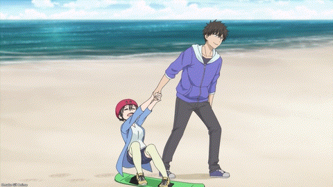 I also appreciated how Uzaki-chan made a plot point out of our baka couple not realizing that Tottori is traditionally a trip couples make together. The slow realization, helped by a guest starring baka couple making heart poses, was delicious to behold. Ami had a hearty meal during the entire trip. There’s still a bit more work to do for the meddling duo of Ami and Sakaki to make the bakkapuru official, but at least they’ve made the odd couple notice how even their usual bickering in public looks like all the other romantic couples. That’s progress.