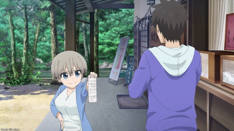 Uzaki-chan has nerve. She brought the rabbit pastry clerk with her to make Sakurai pay! And then she takes a bite out of his bunny pastry too. Indirect kiss, here we go. Kuso Cat knows the truth of Tottori and now we do too. Look at that post box! Ami and Sakaki think that a revelation is about to strike Sakurai and Uzaki. A couple makes prayers at a certain shrine in Tottori. Uh oh! Uzaki’s fortune is awfully specific about her prospective love partner. Hint – It’s Sakurai. “Direction: Right in front of you.” Hahaha! Hakuto Shrine is “the holy ground for lovers.” No wonder Ami and Sakaki were so interested in watching Sakurai and Uzaki-chan get awkward around each other. Exquisite. White Rabbit and Kuso Cat fight it out! The shrine is supposedly the site of Japan’s first love story. Ami exclaims that Tottori tourists are generally couples in love. She exaggerates, but I admire her spirit.