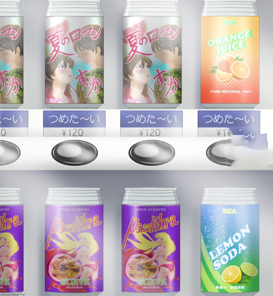 There she is! Total shock that Sakurai has a friend besides her. Sweet relief like Uzaki-chan is his older sister. Itsuhito is noticing many, many things as they talk. Funimation translated Uzaki calling Sakurai 根暗 (ねくら, nekura – gloomy) as “gloomlord.” I love it. Sakurai’s peaceful college life is over. Again. Itsuhito is going to “help.” Somehow watermelon flavor stands for innocent romance while guava juice is passionate eroticism. Uza brand soda just hanging out.