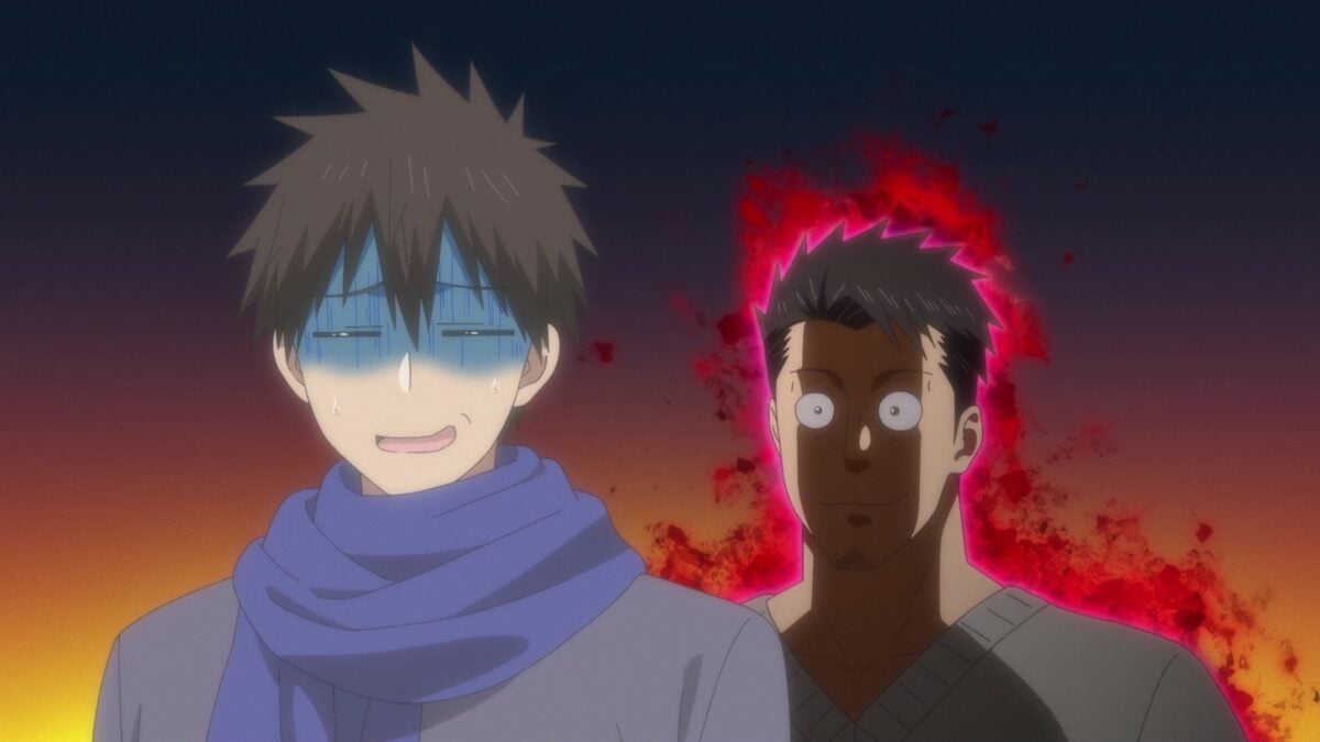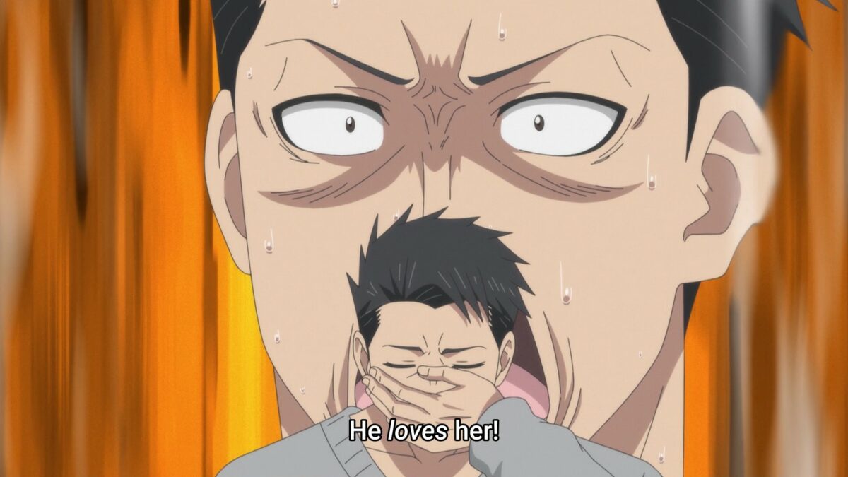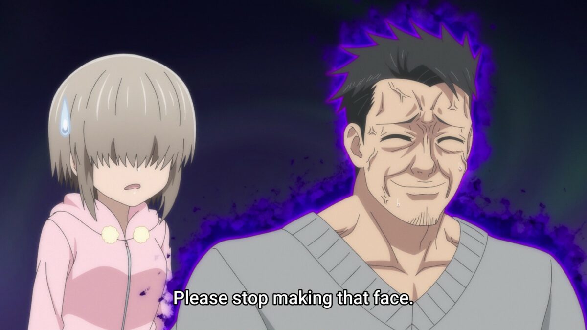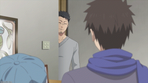 I have been waiting half a season for this episode! How would the Uzaki-chan Wants to Hang Out! anime handle Fujio meeting Sakurai? Not as a gym customer, but as his daughter’s beloved Senpai? The key was showing conflicting emotions on Fujio’s face. Lots of conflicting emotions! The young college man had given Fujio advice on his feelings about his daughter’s romantic situation. And Fujio had heard from the earnest Sakurai how he would treat a friendship on the cusp of turning into something more. All the while, Fujio wanted to hate this “Senpai” for taking his cute daughter away from him, but Fujio liked the lad he met at the gym. So when the mean Senpai combined with the likable Sakurai, it was too much. Fujio’s facial expressions and quick mood changes said it all!