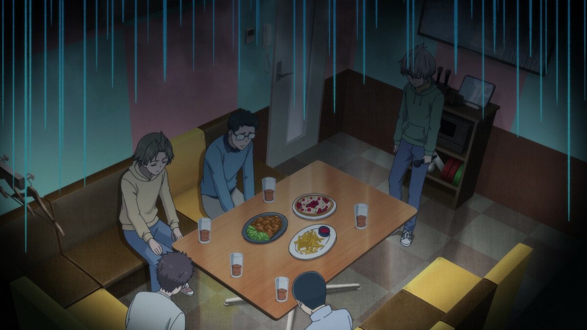 Uzaki-chan Wants to Hang Out! saved for later a scene of Kiri recognizing the “big” Senpai from his father’s gym pool. We had a full plate of awkwardness from Fujio and Sakurai because they were friends already. Kiri already felt inadequate on Christmas Eve. He was with his male buddies instead of a girlfriend. His sister’s future boyfriend owned the trifecta of being a better swimmer, having a female companion, and a Super Dekai package. That would have been too much for Kiri’s self-esteem. And what if Sakurai was a better singer? The depression would have been too deep!