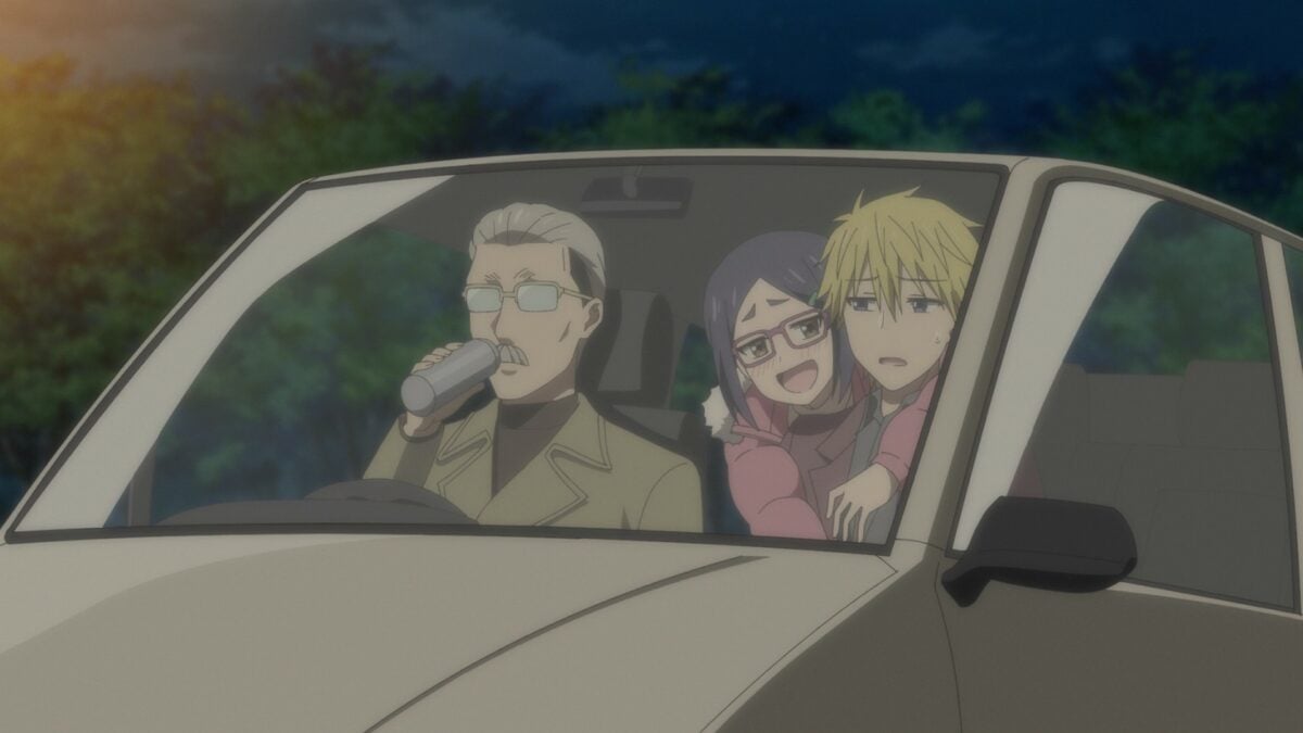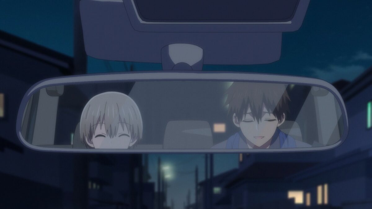 Aw. Fujio stopped the madness. He and Uzaki-chan need to get an incapacitated Sakurai home. Taxi home. Fujio finally reconciled the nice guy he knew from the gym with the incredible Senpai Hana always discussed. Their lives are already intertwined with family. When will Sakurai’s family meet Uzaki-chan? Will it be the same roundabout way Sakurai met her father? Cute! But will Sakurai remember Uzaki-chan hugging him like that? And we’re caught up to the first episode of Uzaki-chan Wants to Hang Out!, Season 2. That flashforward took thirteen weeks! What a tease. Those scenes made it look like they were alone instead of with Uzaki-chan’s parents.