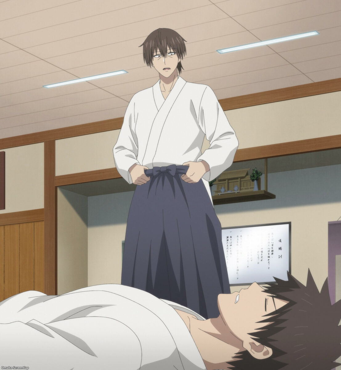 Shinichi has time for one more throwdown with his dad before the new year. Sakurai can’t focus on judo because he keeps thinking about Uzaki-chan. Mr. Sakurai isn’t much into judo. He stumbled into it when he inherited the dojo from Mrs. Sakurai’s family. Hey! Judo skills can be good for pushing down a girl! Rude! Shinichi can do that with tons of alcohol in his system. Ha! Kick back at ya! Shinichi and his dad have the same temper.