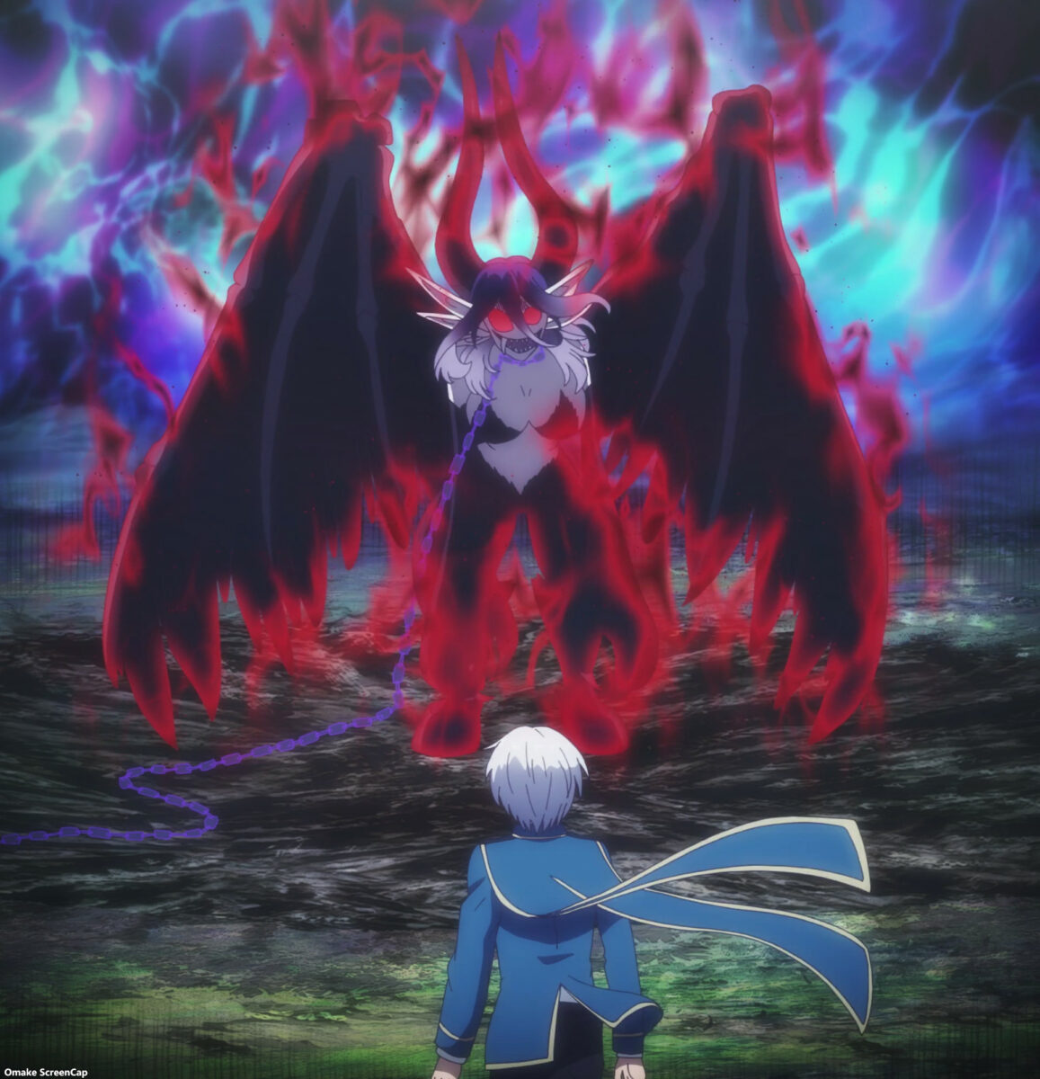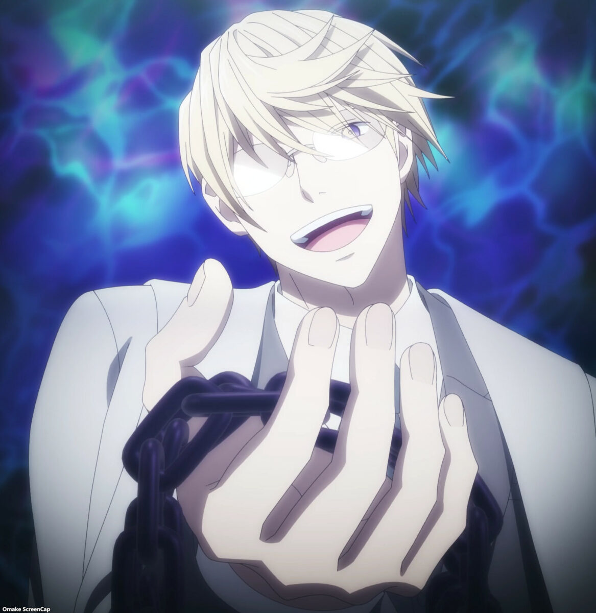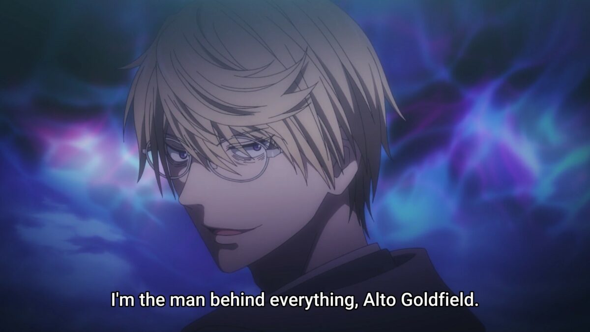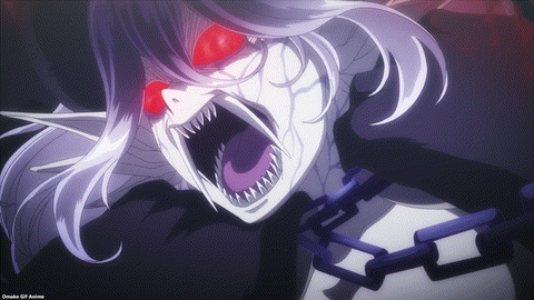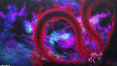 Vermeil in Gold repeats the last minutes of last week’s episode. The paper Shikigami aims to keep President Elena from interfering with Obsidian and Vermeil. That’s a clue for how powerful Obsidian considers Elena to be. Ugh. Obsidian’s dark bubble magic turned out to be a black chain he put on Vermeil. That won’t work. Alto entered the crazy scene. He won’t handle it well.