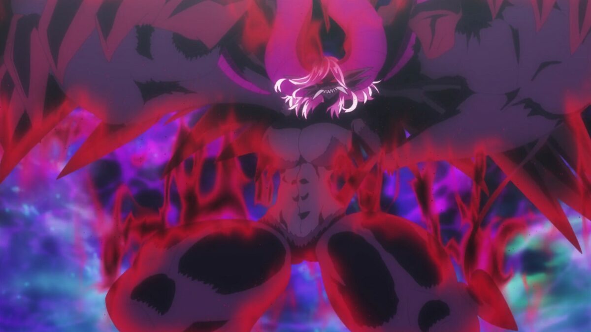 Ack. Now Obsidian will lose his marbles. He did all that work on magic doping, so he’ll need to try his product. Ugliest meat suit ever. Obsidian summoned or found hundreds of low-level demons to make himself a human-demon hybrid. Too bad that the tiers of demons are exponential instead of additive. Vermeil looks unconcerned. The basics of fighting are punches, even for devils. Gross. Lets’ see Obsidian walk that off. Ugh. This is the Vermeil in Gold version of Attack on Titan.