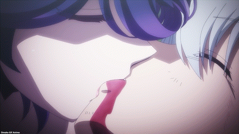 But things are different for Vermeil and Alto. Vermeil in Gold made Alto an incubus for Vermeil! She needs to kiss him to give him mana now. Vermeil hasn’t gotten another virgin killer dress, so she’s wearing men’s clothes! There’s awkwardness on Vermeil’s part too. Vermeil thinks Alto’s body will accept her heart transplant decades into the future. Then she won’t need to give him demon mana anymore. Alto tries to be assertive. The best way to shut up a mouthy she-devil is to kiss her! And wall-slam her! There was no mana exchange, which means that Alto is in love with her! Aw. He could only stay assertive for so long. Instead of cold awkwardness, we’ll have hot awkwardness!