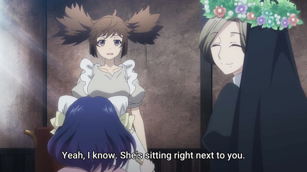 The other detail from Vermeil’s past was how she asked the mysterious mage to seal her 200 hundred years after her first calamity. I believe the more pertinent memory is how Vermeil found the veiled lady. Vermeil asked to be locked away after rampaging for centuries and building her reputation as “The Strongest Scourge.” The credits for Vermeil in Gold show the Veiled Lady’s name as “Fatima,” but no one in the anime has uttered that name. Yes, we’re dealing with an adaptation from a manga source, so the knowledge is out there. But that information should come from the story we’re watching, not the medium we’re referencing. We only have one more episode for the anime to get that detail right.