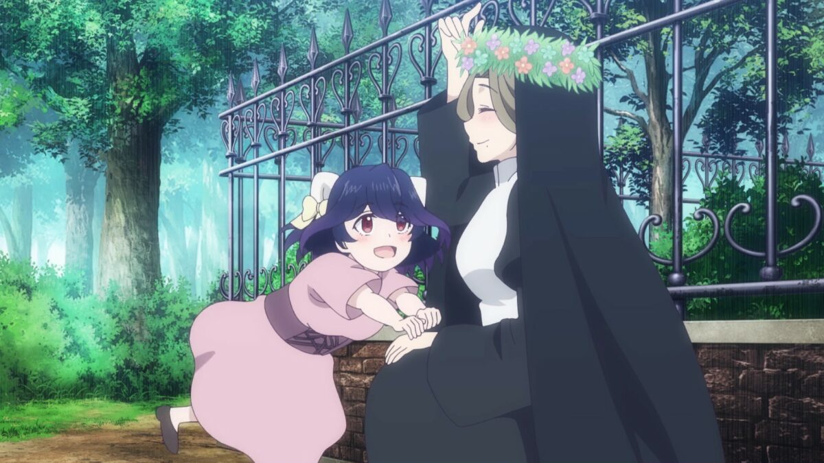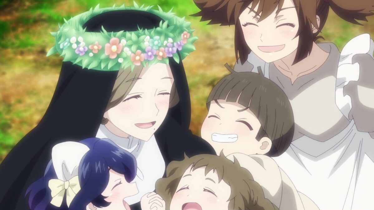 This happiness can’t last. Vermeil in Gold foreshadowed tragedy quite well. A common accident for girls is losing a hair ribbon, so that occurrence started the coming disaster for Vermeil. Ooh, this is compelling. Mielle ran off the bullying kids, but she was the one who warned Vermeil about how demons are the enemy of God. How will Mielle react to Vermeil’s devil horns? Like Sister! Vermeil was blessed with a loving family. But that foreshadows a horrible ending for them.