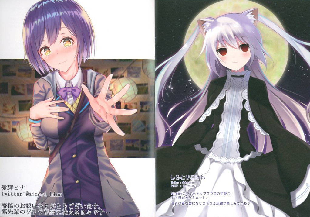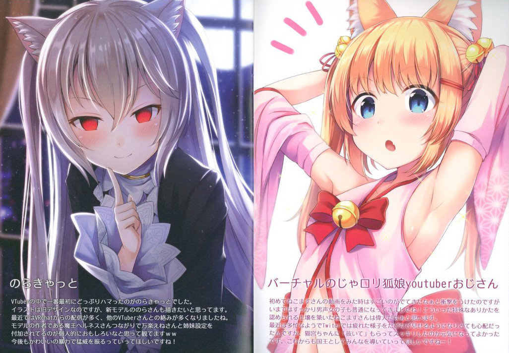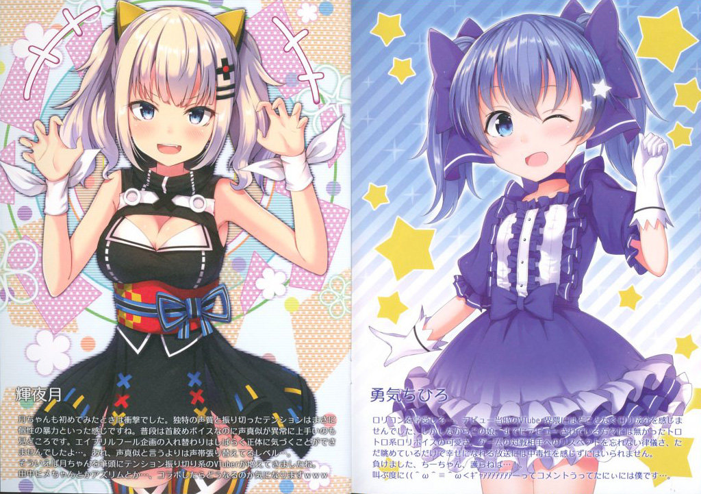 Today I’ll be spotlighting a wonderful doujinshi art book from Japan by artist SUNSK. This art book is based on Virtual YouTubers who are really popular right now and features illustrations of popular Virtual Youtubers such as Kizuna Ai, Kaguya Luna, Noracat, Yuuki Chihiro and many more.