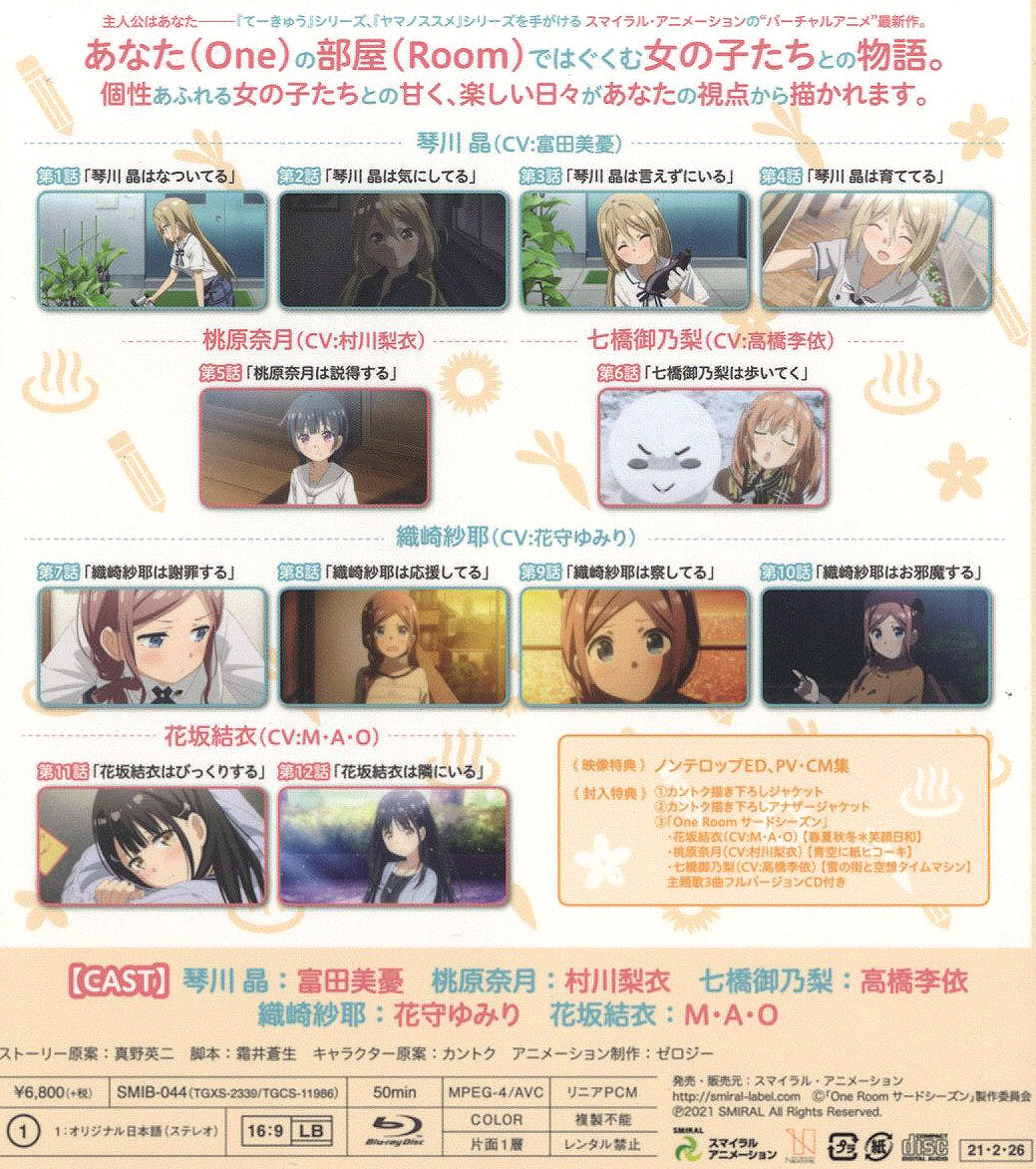 There are two One Room Blu-ray boxed sets available, the Season 1 & 2 set that contains both series, an original booklet, large box with original illustration by Kantoku, and more. Best of all, there is new animation of each girl’s story! The Season 3 Blu-ray set also adds new animation shorts, and gives you the soundtrack with all three anime OPs to enjoy.