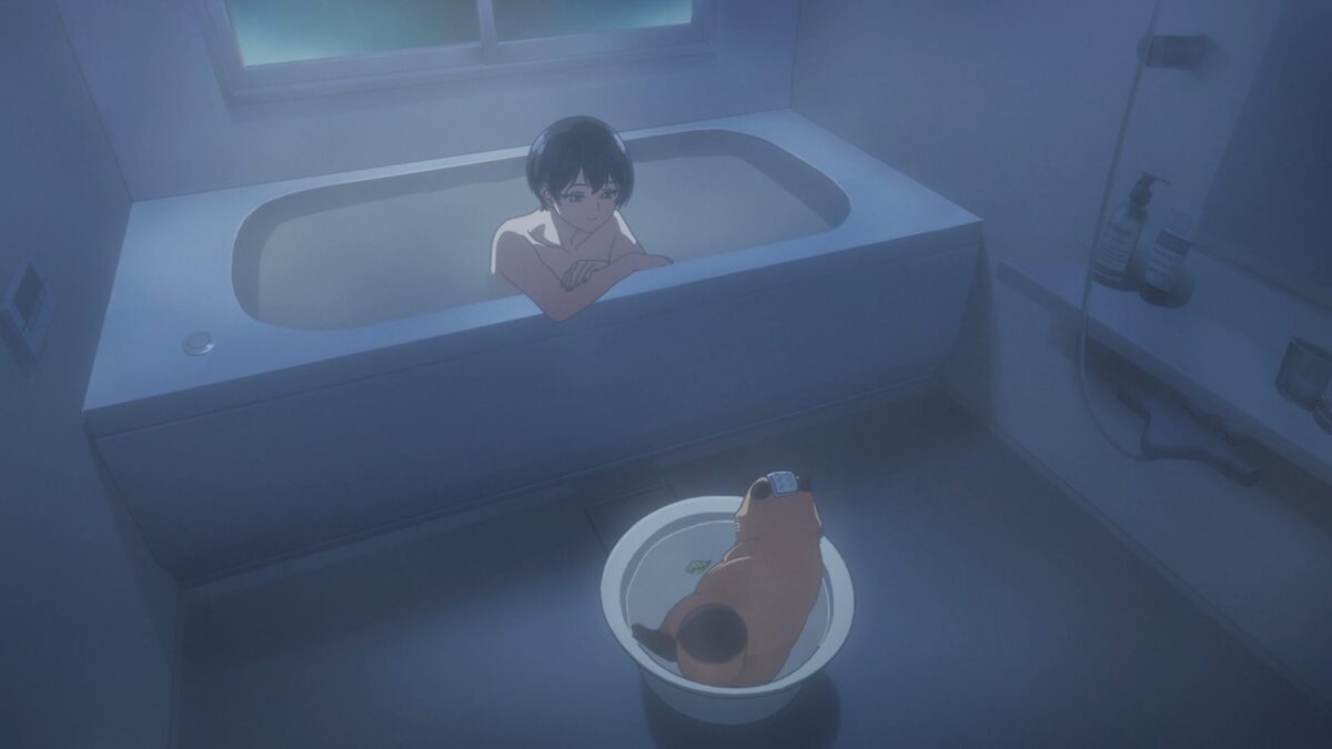 The anime’s GOATed sound effects and scene music eloquently danced with the visuals. When someone praises an anime’s visuals, people tend to imagine stuff like Gonpachiro’s fight against Rui or Pecorinne’s Orbital Reentry Princess Strike! There’s more to solid animation than flashy fights. Capturing the beauty of swaying grass, the slowness of a summer sky, or, in this case, a rainy day is a challenge. Likewise, conveying the comfort of a hot bath isn’t something most shows do well. Lesprit did that and more in Ame to Kimi to. I watched this show in 101° weather, and I could feel the coolness of a rainy day.