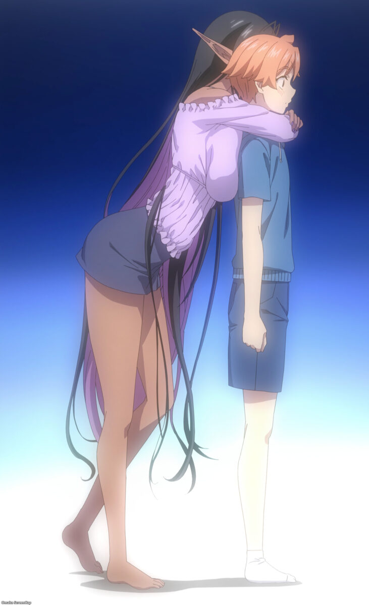 Yandere Dark Elf: She Chased Me All the Way From Another World! (Chotto dake Ai ga Omoi Dark Elf ga Isekai kara Oikakete Kita) streams on Hidive in the “least censored” web version in Japanese audio and English subtitles. These reviews will rely on the uncensored AnimeFesta versions.